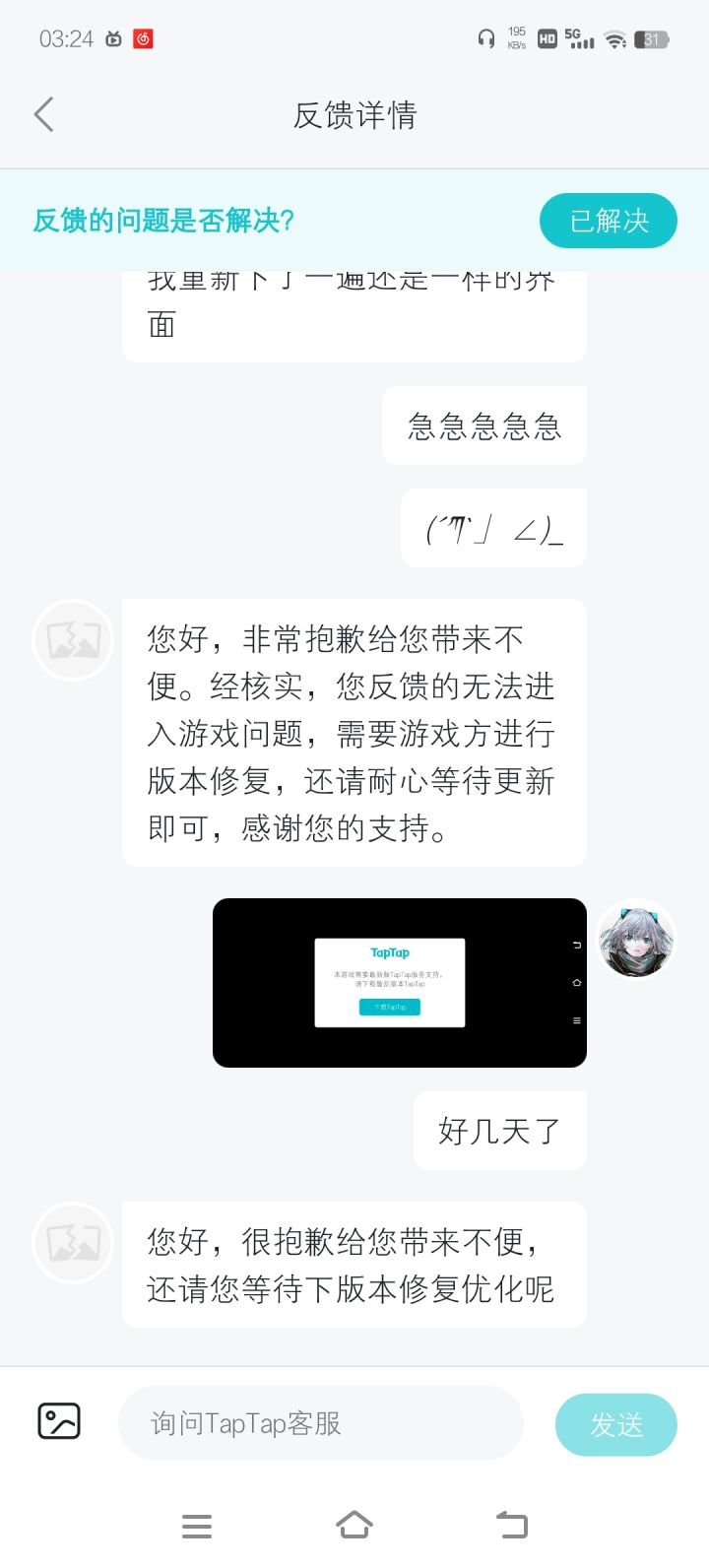 买完了发现打不开玩不了,进论坛发现好多人有和我一样的问题,但是我去看了我taptap确实是最新版本,官方可以说一下怎么解决吗,买了玩不了真的很难过😭