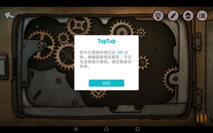 我连续很多天都没有玩这个游戏,然后清晨我也没有玩任何其他游戏。每次进南瓜先生,我都发现我被这个系统卡住了。我都没玩够90分钟。简单来说我一分钟都没有玩。他直接显示我已经玩了90分钟了。我玩其他的游戏还是正常的,可以玩。就是南瓜先生一直卡