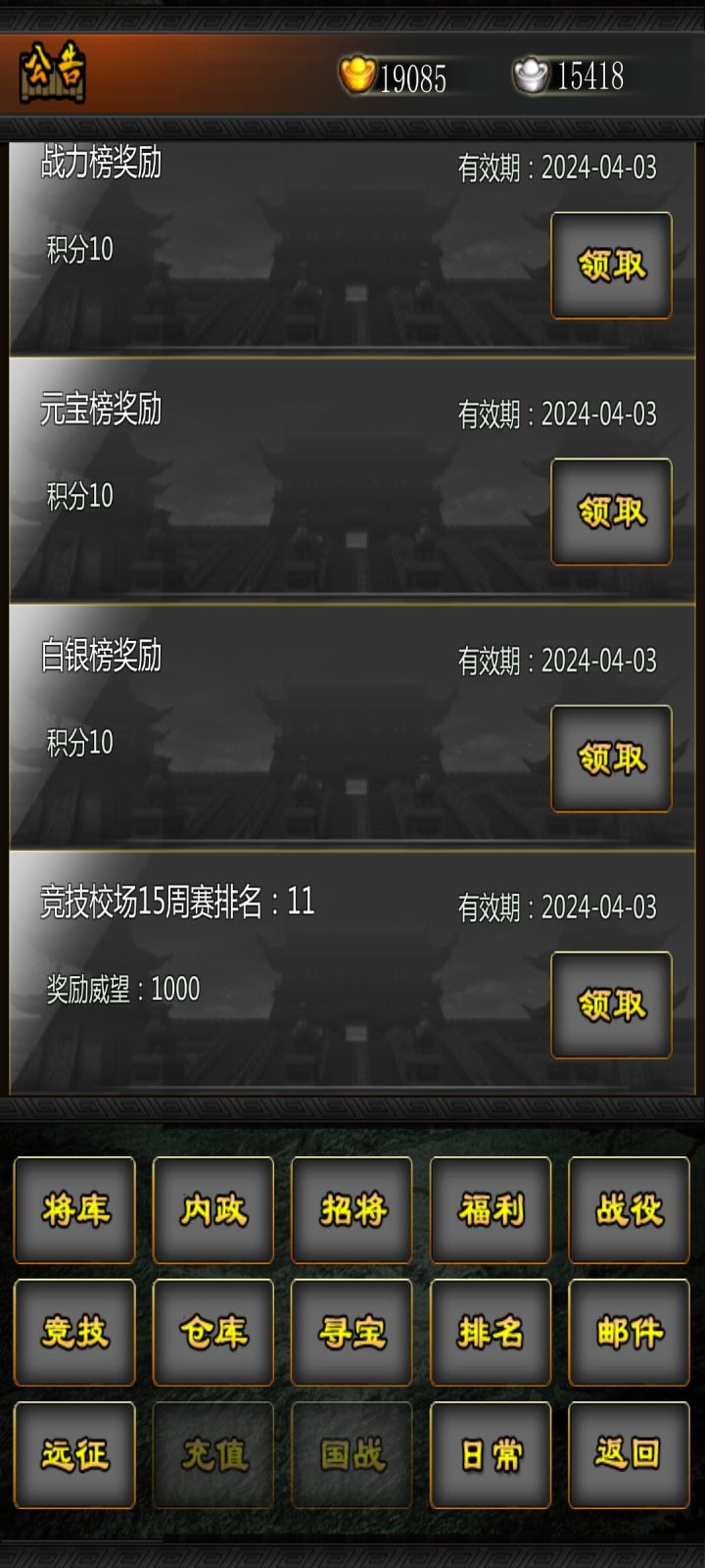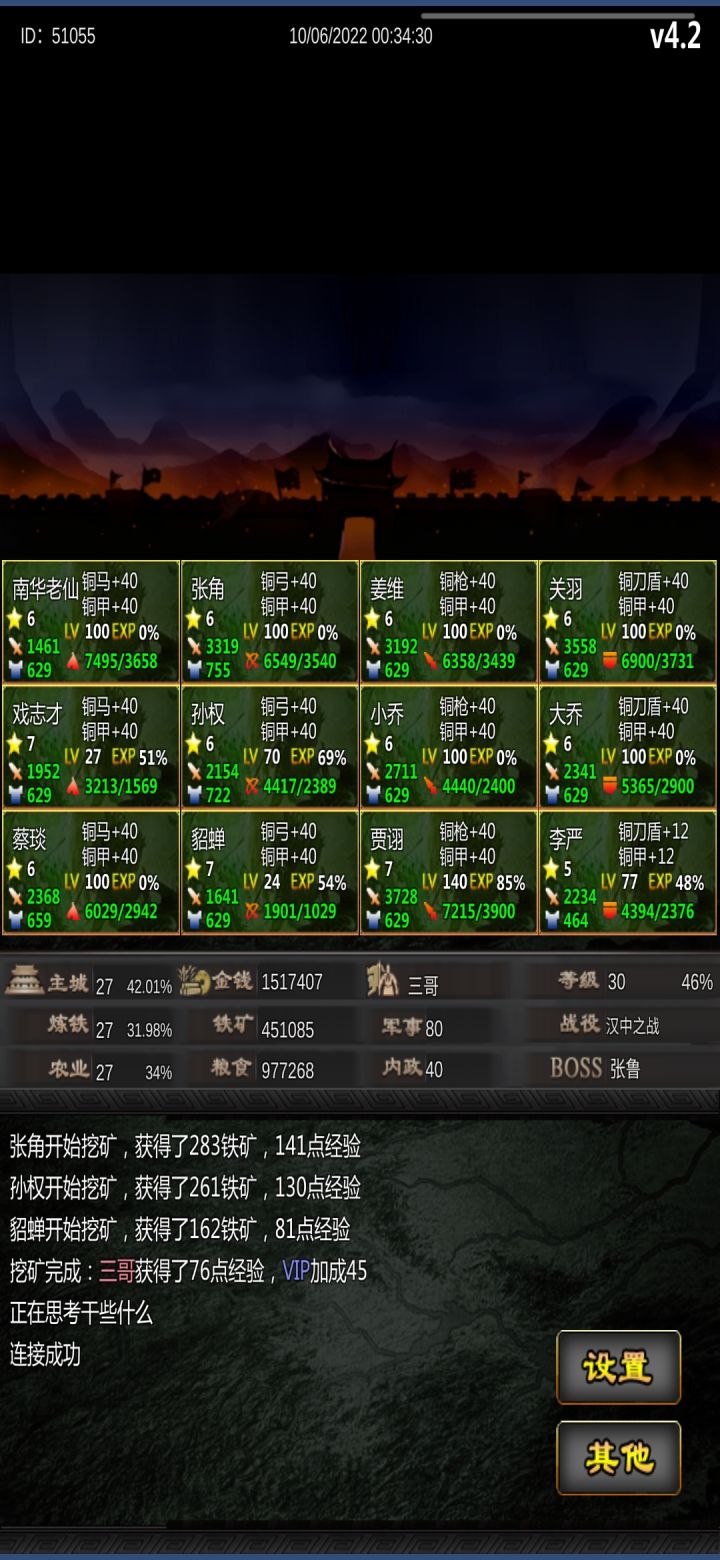 最后如果你能坚持下去,将练差不多了了,可以考虑用平时攒来的元宝去刷主公属性,转内政为主!
