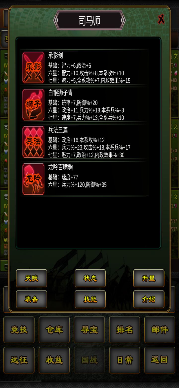 新手篇(无6星或少数6星)有啥上啥,血多的放前面,攻高的放后面,争取能赢进阶篇(大部分6星)学会看6星将的天赋,注意触发条件,争取把把有书,不要打分高的,追着分低的打,快速发育高级篇(小部分7星,基本全6星,铁30+)这时基本发育好了,可以考虑冲排行榜(前15有白银(没啥用),前5有黄金),要知道怎么搭配阵容,学会更好的使用光环适合竞技场的武将分类:战力将(身材好,血多或攻高)和光环将