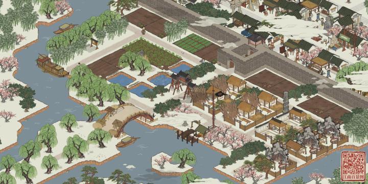 具体使用下来,雕像加成应该开到最大了,棉花吃紧可以换掉几块菜田。产能算是跟得上的。环境基本可以绿到田里了。感觉还挺好看,有桃花源的感觉,给大家康康。