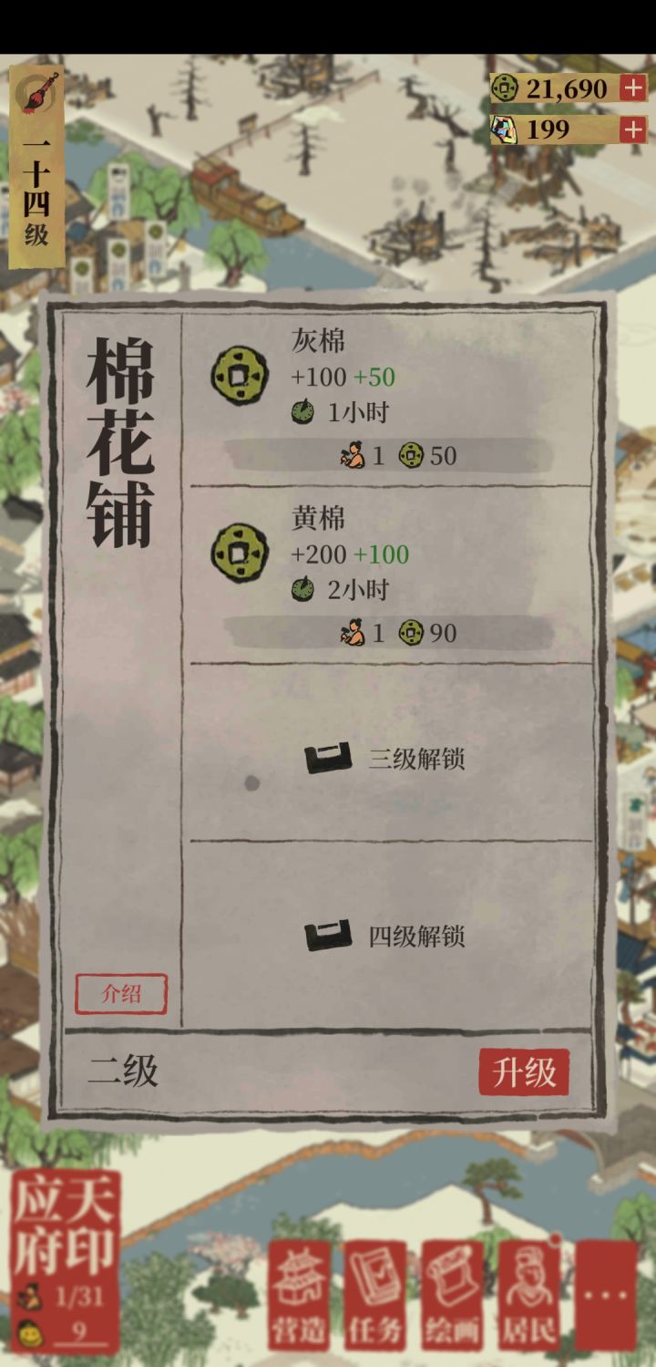 首先,你得先了解游戏的一些名词的意义。。目前等级已到内测上限15级,我根据自己玩的情况总结了一下。我自己将进入游戏到探索出所有雕像的时期称为开荒期。将之后的时间称为升级期。无论什么时候,人口(繁荣度),小钱钱(铜钱)都是最重要的。开荒期(这是一个需要你肝的时期):顾名思义,以探索地区为主(直至探出所有的雕像)注:可探索的地区的小破庙上的有旗子飘。1.除任务外,此时期不要交换任何高级资源(
