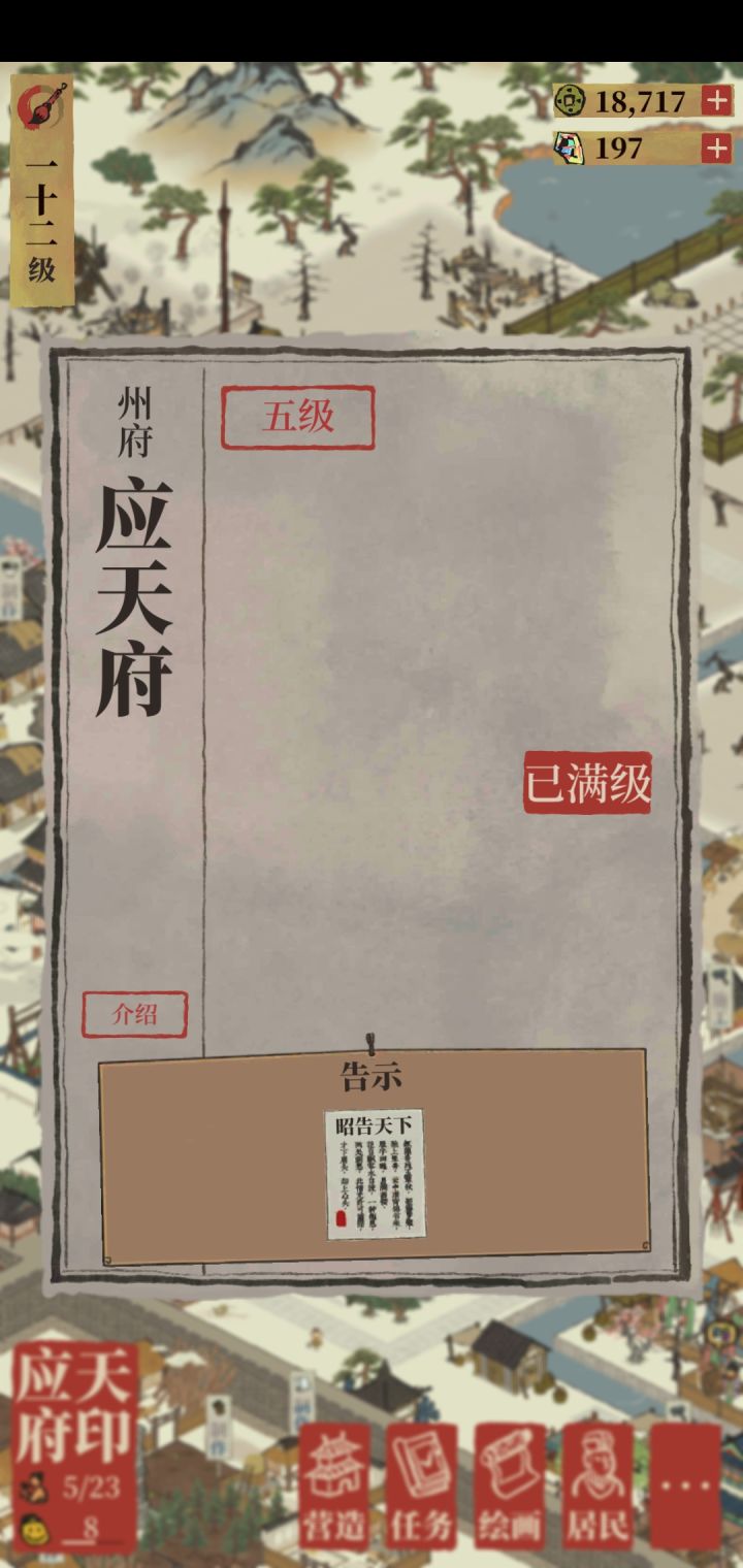 玩了这么3天,等级12级,感觉可以来说一下看法和心得。一.目前测试州府只开放到五级,我升满了,但是后悔了。毕竟目前没体会出升州府有什么必要性和好处。建议正式上线时可以增加环境、繁荣或别的发展数值,或者来个民居等建筑数量上限也行。 另外有看到有个帖子建议按州府等级来设定客栈索求物品,这个我反而不太建议,毕竟这样反而容易导致更多人压州府等级刷材料二.当我角色多起来以后,我就无法准确知道我之前派给他