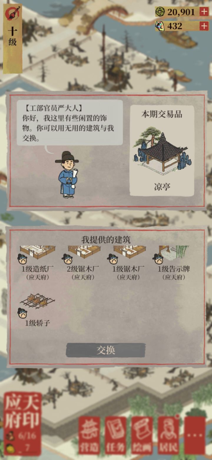 请教一下怎么知道严大人需要什么建筑才会和我换啊已修改,攻略在评论区。