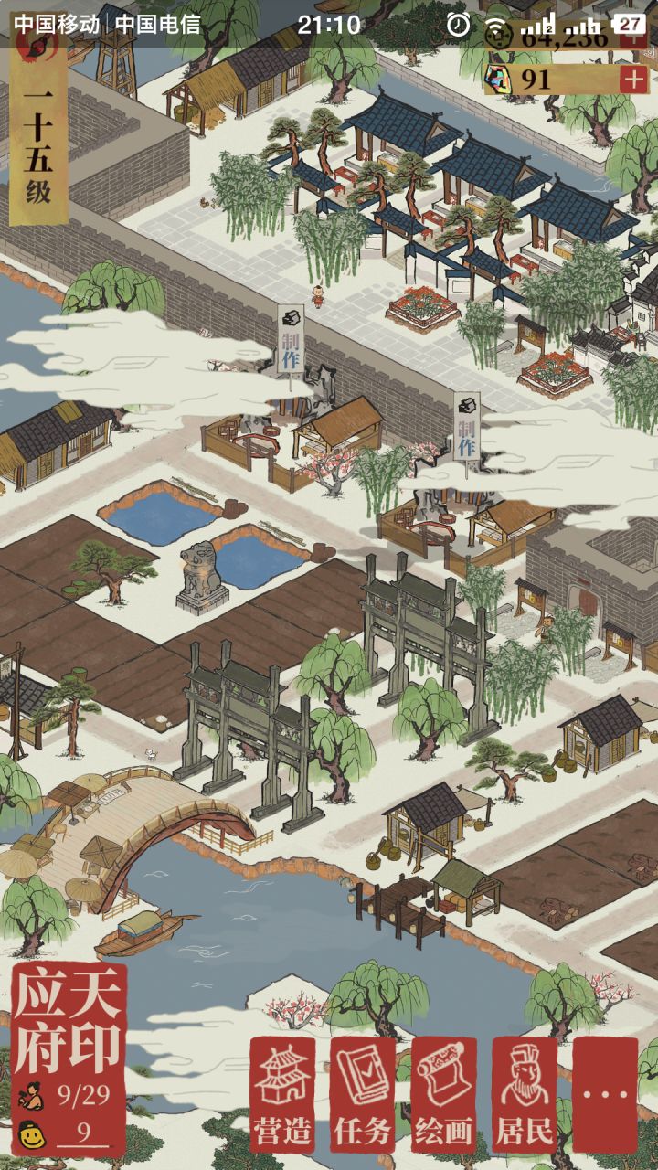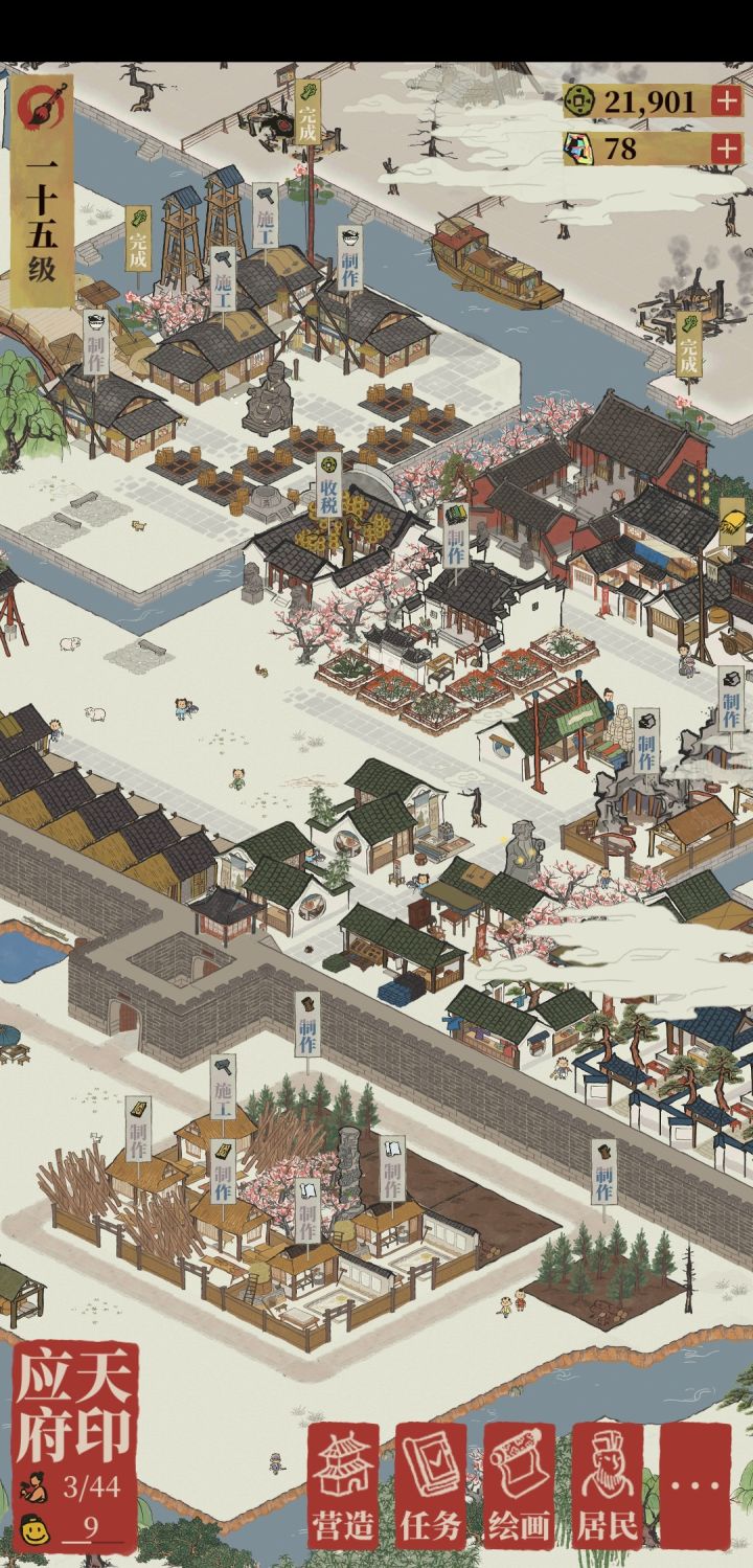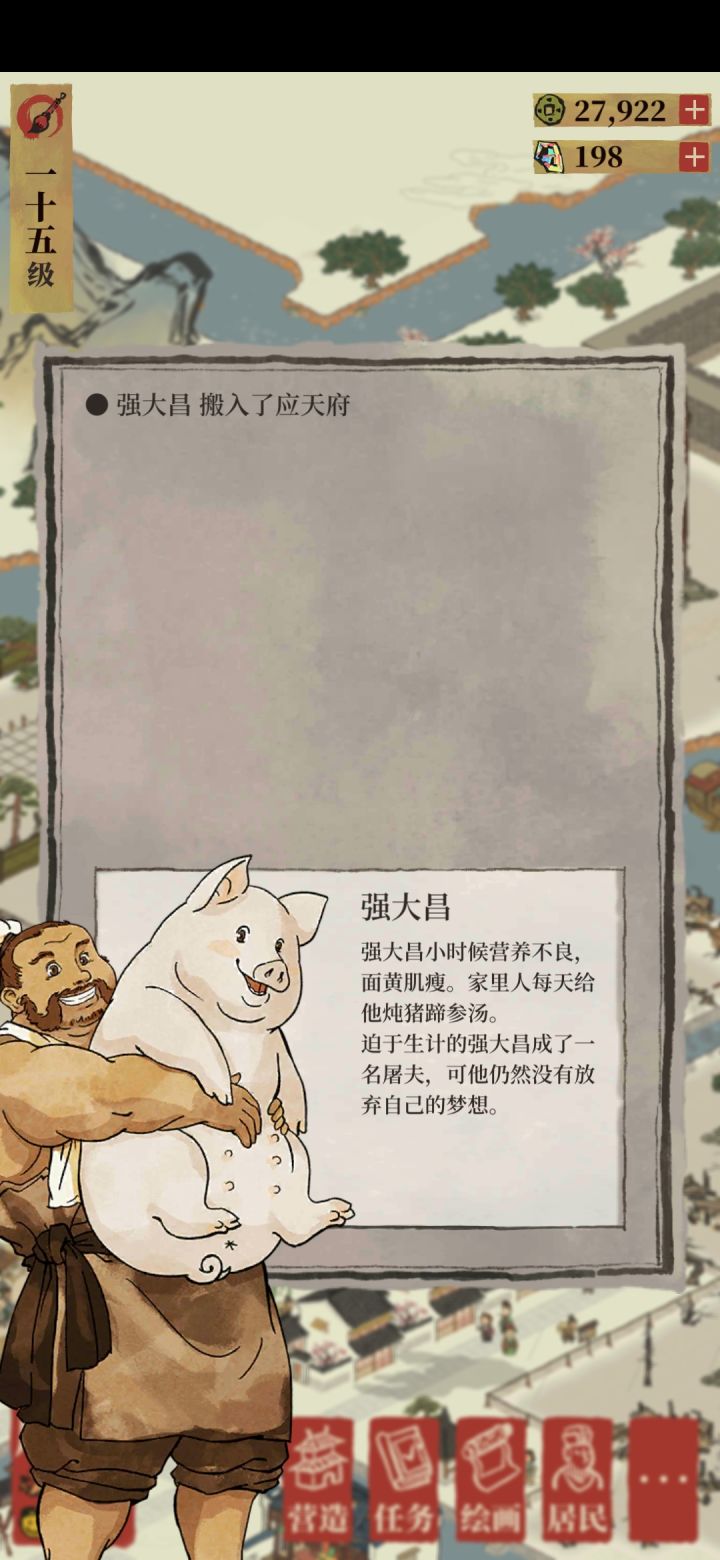 先上图。被画风吸引来。玩了两天,游戏的玩法逻辑大约摸完了。就是刷资源,建房子,其实就是个卡牌元素收集游戏,没有挑战性的。前期有各种奖励,资源不缺。但到了15级开始铜钱就很缺了。不想肝,也不想插件,氪就算了,铜钱太贵,搞不起。往后也见不到玩法的改变。可见就是一直重复目前做过的事,会很无趣。肝的时候傻傻看着画面,也没有体罚事件,太无聊。一直点水井真的是太傻。所以没有肝的动力。参数设置一团糟。1