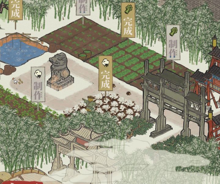 营造里面是这样的↓实际上建造了是这样的↓另外想问最下面这个白色的是什么东西呀?纺的丝嘛?是我级别不够嘛?不知道是什么生产的耶~