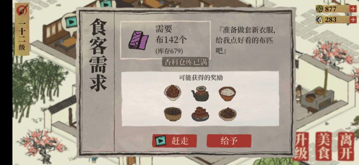 我的客人总是一直给我香料,可是我要别的才能做菜,做菜才能升级,可是就一直给我这一个…我怎么升级我想问?