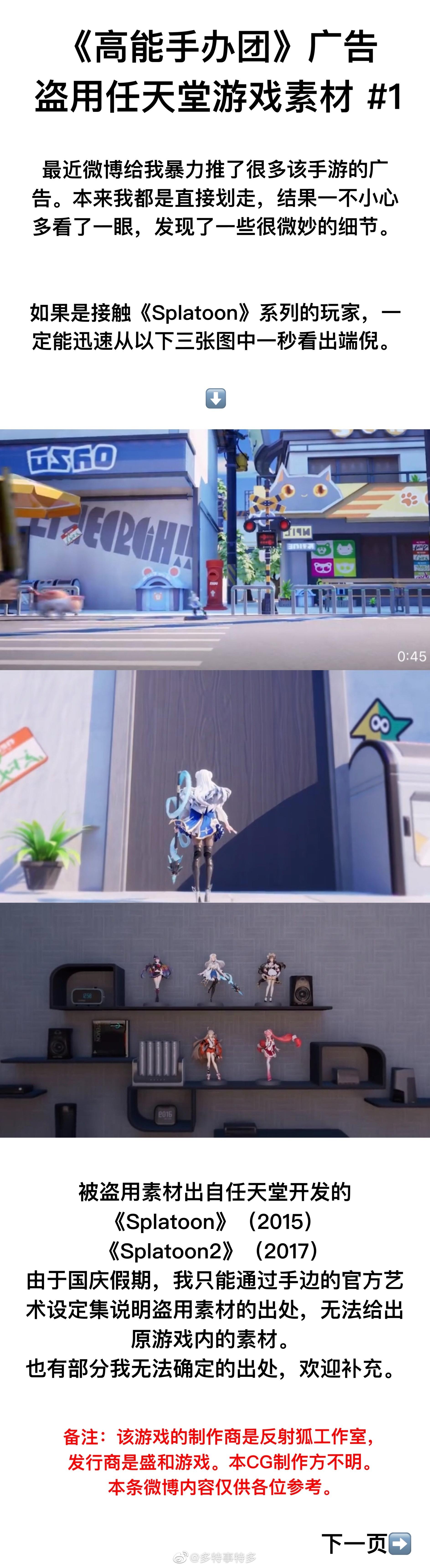 我还是蛮喜欢这个手游的,但是明目张胆挖喷射战士的素材,这有点太嚣张了吧。而且任天堂和迪士尼一样,在维权这方面非常强硬。我蛮喜欢这游戏的,不想让这游戏凉了,所以说官方早点道歉吧,把这些素材换了,不然可能又要来一次公关危机,还可能吃官司图片转载自微博