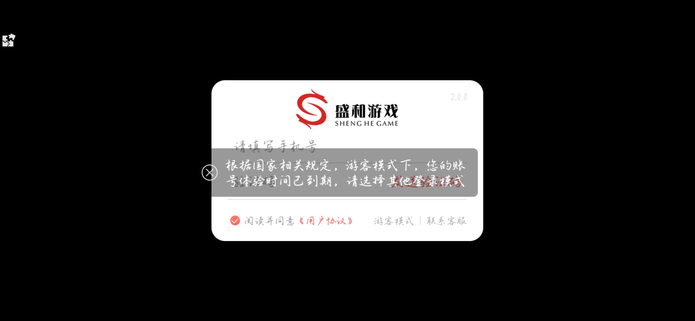 就刚刚提示一小时了,玩不了了,我按提示输了手机没收到验证码,然后我就退出来,接下来就登不上游客模式了,我要怎么升级账号呢