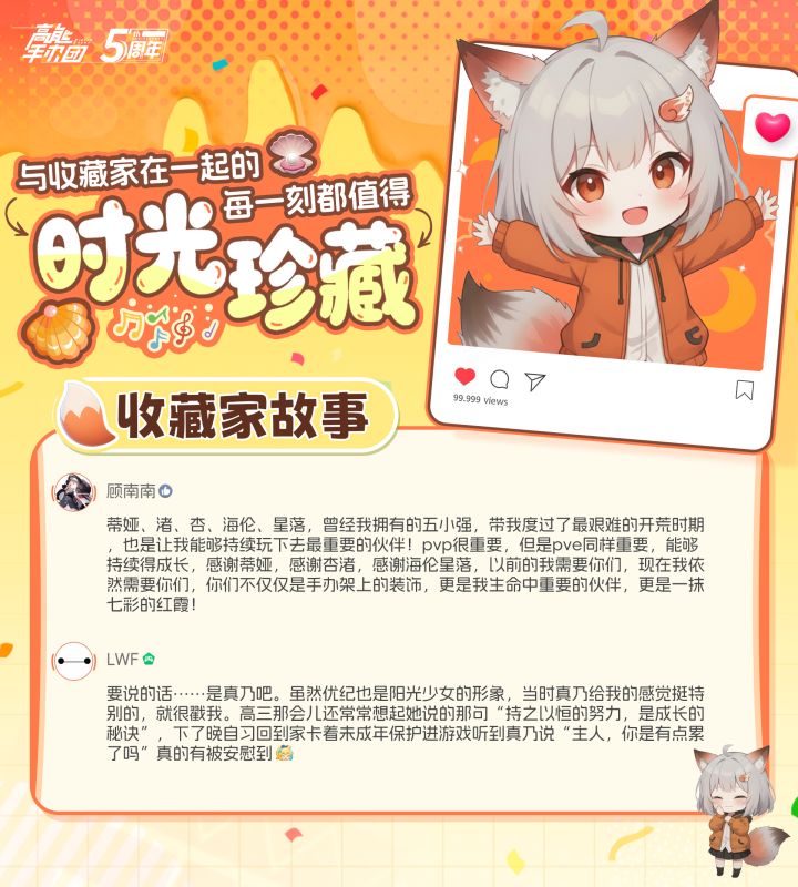 周年庆期间,柴狐收到了好多收藏家的留言,读着大家跟手办们的故事,柴狐跟同事们眼泪哗哗…感谢所有收藏家的留言!为大家送上大大的礼包码:【鎏金异乡】也会悄悄为几个写下特殊故事的收藏家,额外送上一份小礼物!🎁
