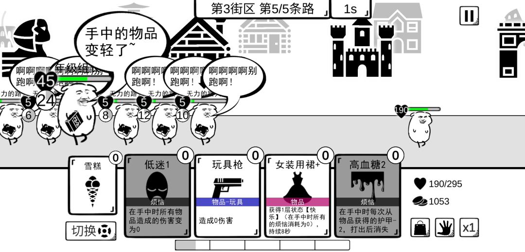 无解。核心1:鸭舌帽。最强防御,免疫一切伤害。核心2:女装用裙。应付开局越塞越多的烦恼,让烦恼不再烦恼,让垃圾不再垃圾。让你多逛商店少去网吧。至于其它牌,因为状态不能断,所以低费过牌第一位。有鸭舌帽,0费自残都无所谓。除去帽子和女装,还剩一个状态位,因为有女装的缘故,配个勺子玩垃圾食品当然是最方便的,成型快,过牌强,一轮少点击很多下。或者西瓜减费,配上曲别针之类的都是很强的。或者樱桃加速体