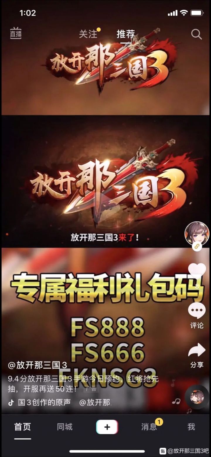 分享几个该游戏礼包码给大家:只限应用宝平台的《放开那三国3》1,BFHYMRu57p53vtx1kcm0o2,BFYKDJu26icbkxm2kdmo53,BFYKMRu3dxl86rvbq10eq