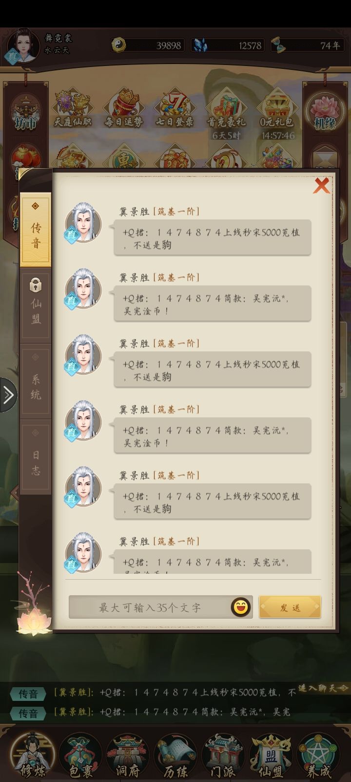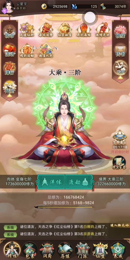 仙人道法5区,五星门派全部刷完了,目前五星门派挂炼器,能不能参考想不想修真和轩轩剑仙这些出点新的玩法?还有就是跨服总是仙人道法一区赢,因为他们人多,每次天地人三个阵营分配完全不平均,总是有一个阵营人特别少,建议不要用区来分阵营,用参赛总人数随机平均分配,这样就不会一家独大