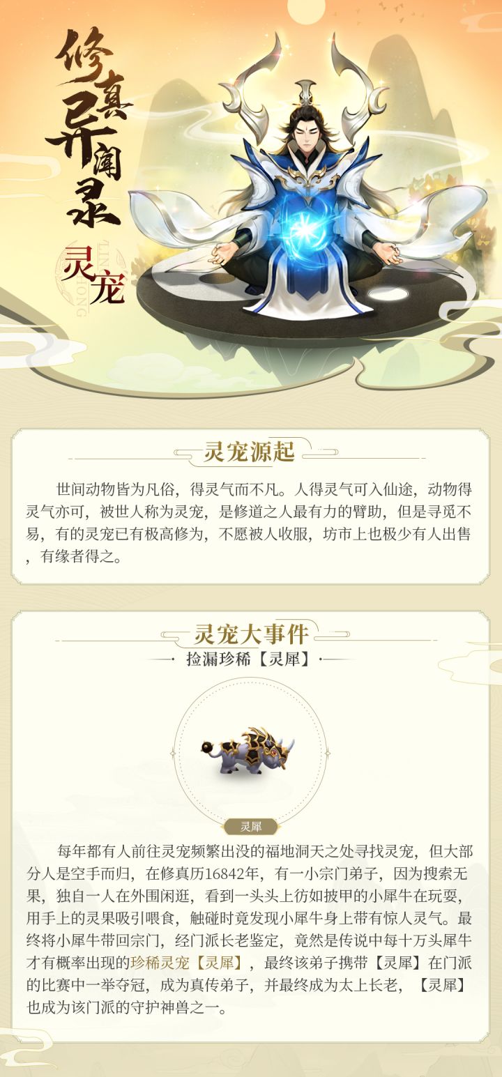 大家好,这里是《逍遥修真》的小道童!(>▽<)今天又是带大家看《修真异闻录》的一天,上次给大家介绍了关于异火的内容:今天给大家带来一个更好玩的一页内容,大家都说在修真世界里,最好玩的一件事就是抓灵宠,有时候在山野采药,有气运的人都能够遇到灵宠幼崽,今天就带大家看看异闻录中关于灵宠的内容,以及一个神奇的获得灵宠的故事:在野外到处走都能随便遇到珍稀灵宠,这可能就是传说中的主角光环吧,羡慕惹~_(