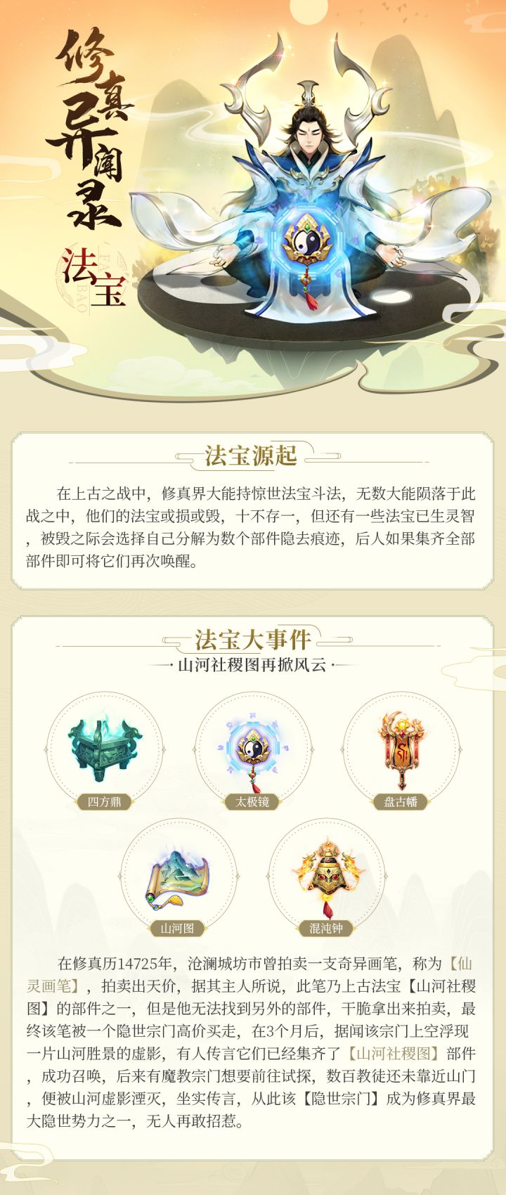 上次和大家聊起了游戏中有【灵宠】的存在,解开了逍遥修真世界的神秘一角。但其实在逍遥修真的世界里,还有更神奇的东西。在修真世界中,据说经常有人会想办法去淘法宝,要是有气运的小伙伴能获得很惊人的际遇,到底是怎么回事呢?上古法宝往往拥有移山填海的可怕威能,很多宗门只要有一件上古法宝镇场,即可成为一方巨擘,而寻常的修真者如果能获得一件,也足以建立一方势力,你会是那个有大气运的人嘛~————————