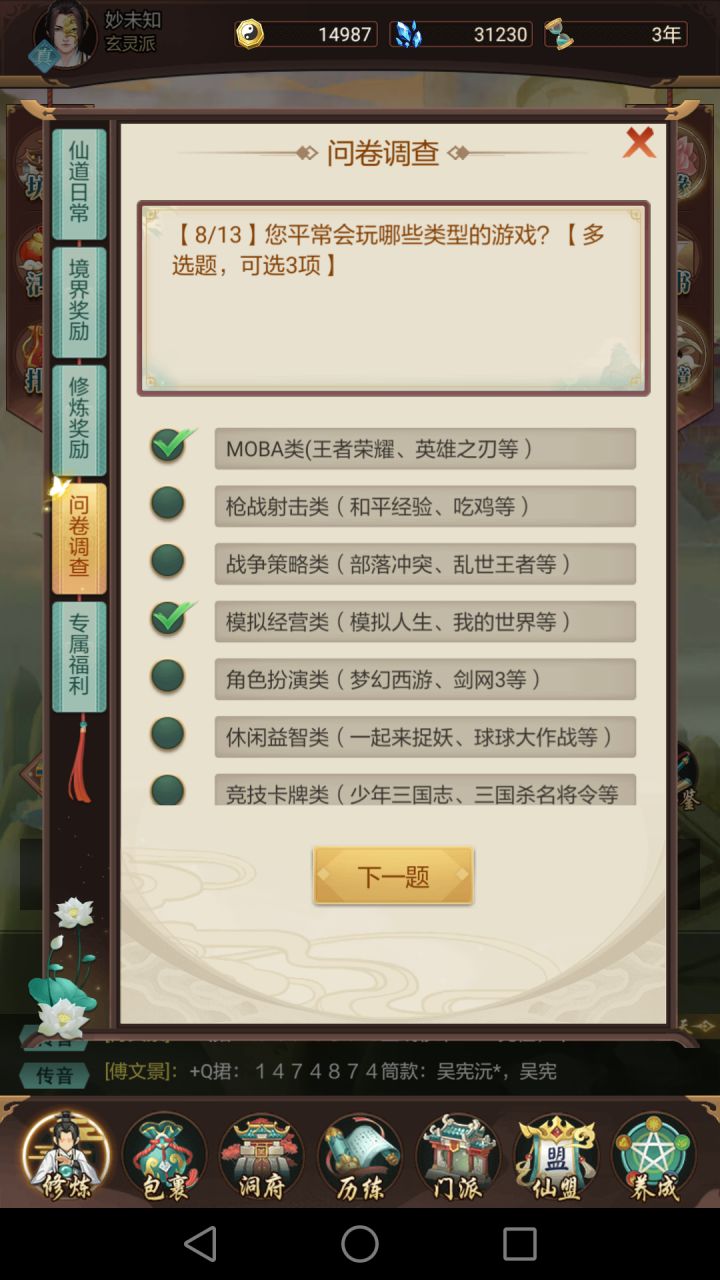 微氪咸鱼党·终极嘤嘤怪·资深相声演员·56服智商最捉急修真者——参上!不是很会玩第一次玩这种类型的游戏,边看攻略边摸索吧。尽量高频率更新~策划大大看看我