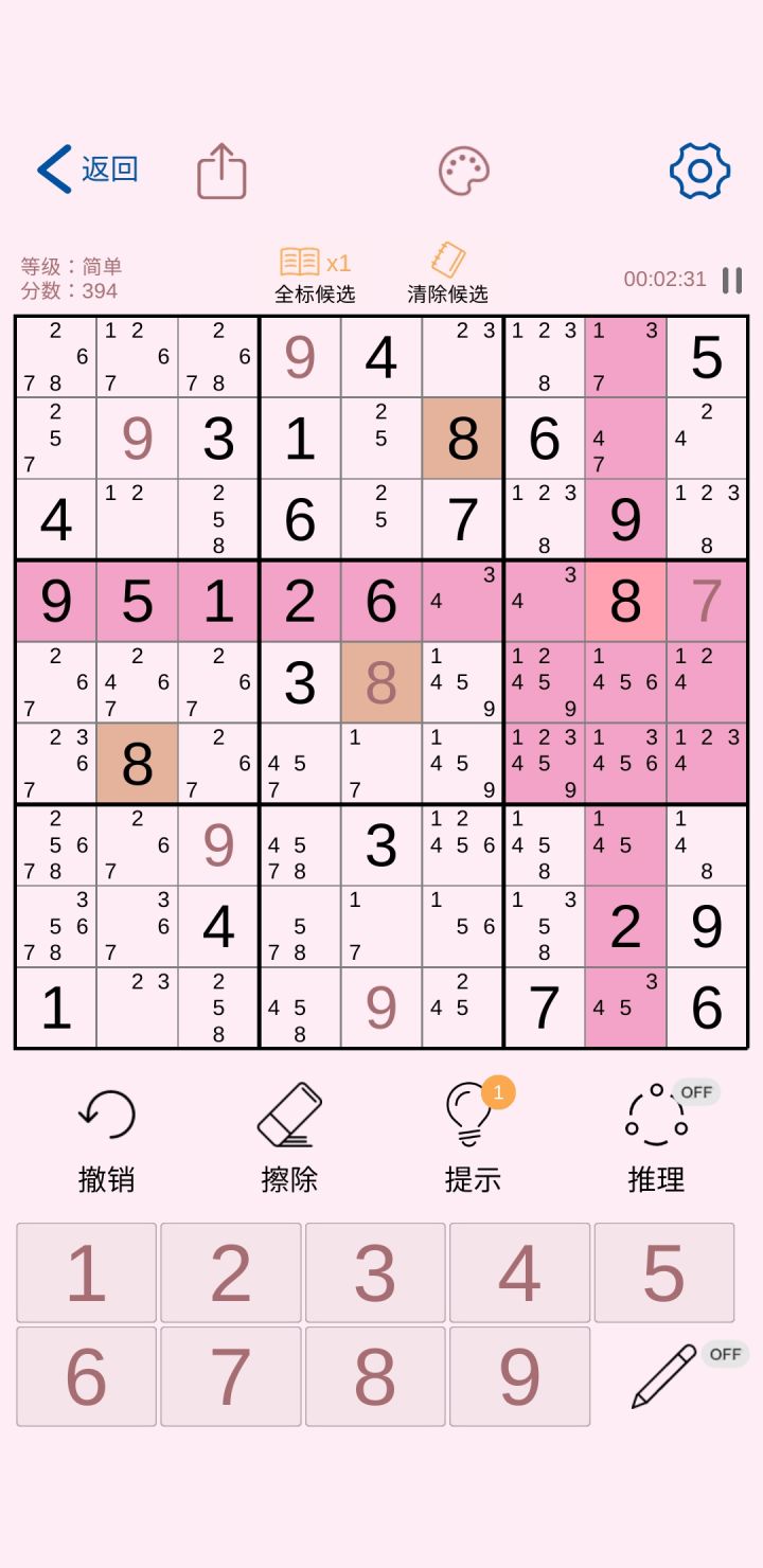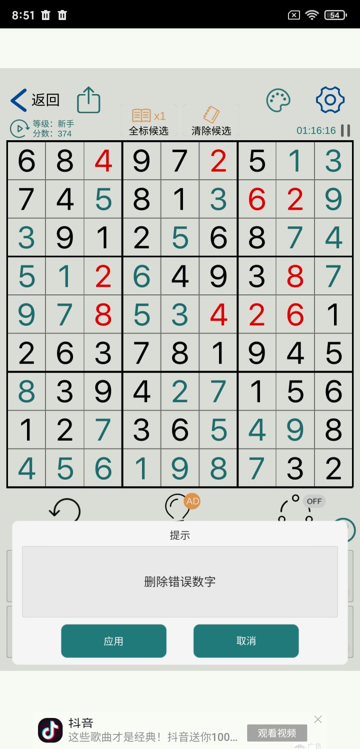 怎么把显示已填的同一数字取消?以前还取消成功过。