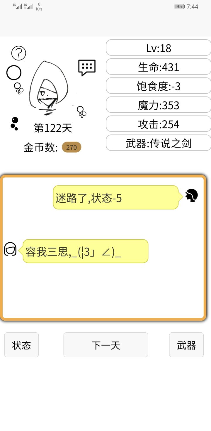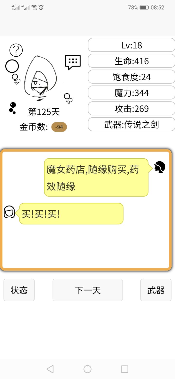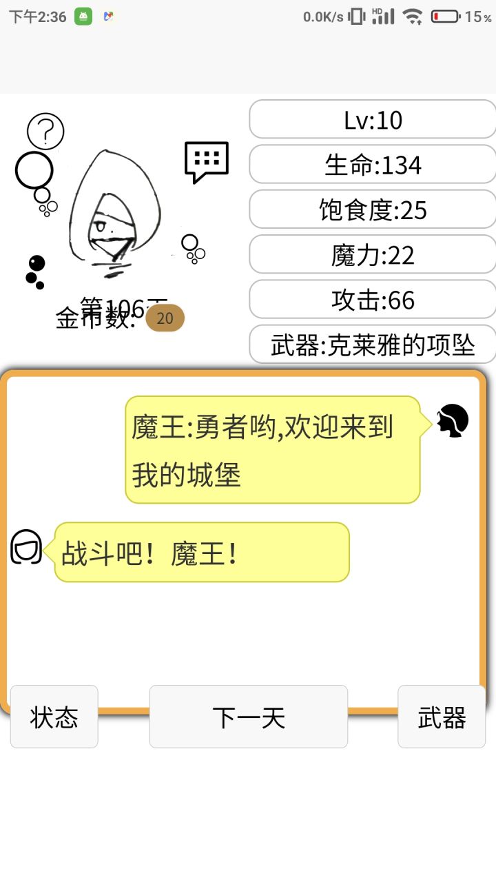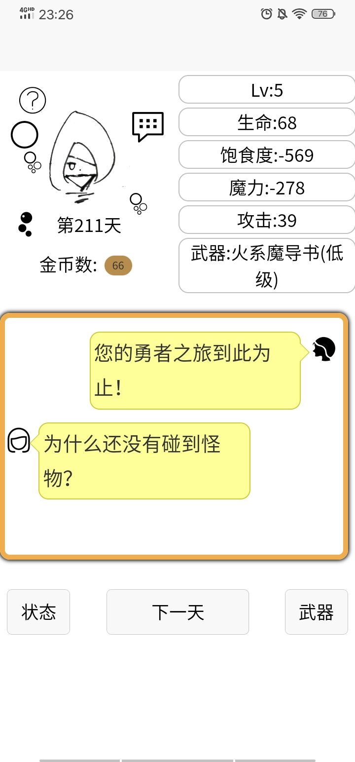 打魔王这里,勇者之剑突然没了,200多的攻击力变40几,点什么按钮都没反应,食物也买不了,唯一可以点的下一关,打得全是小怪。