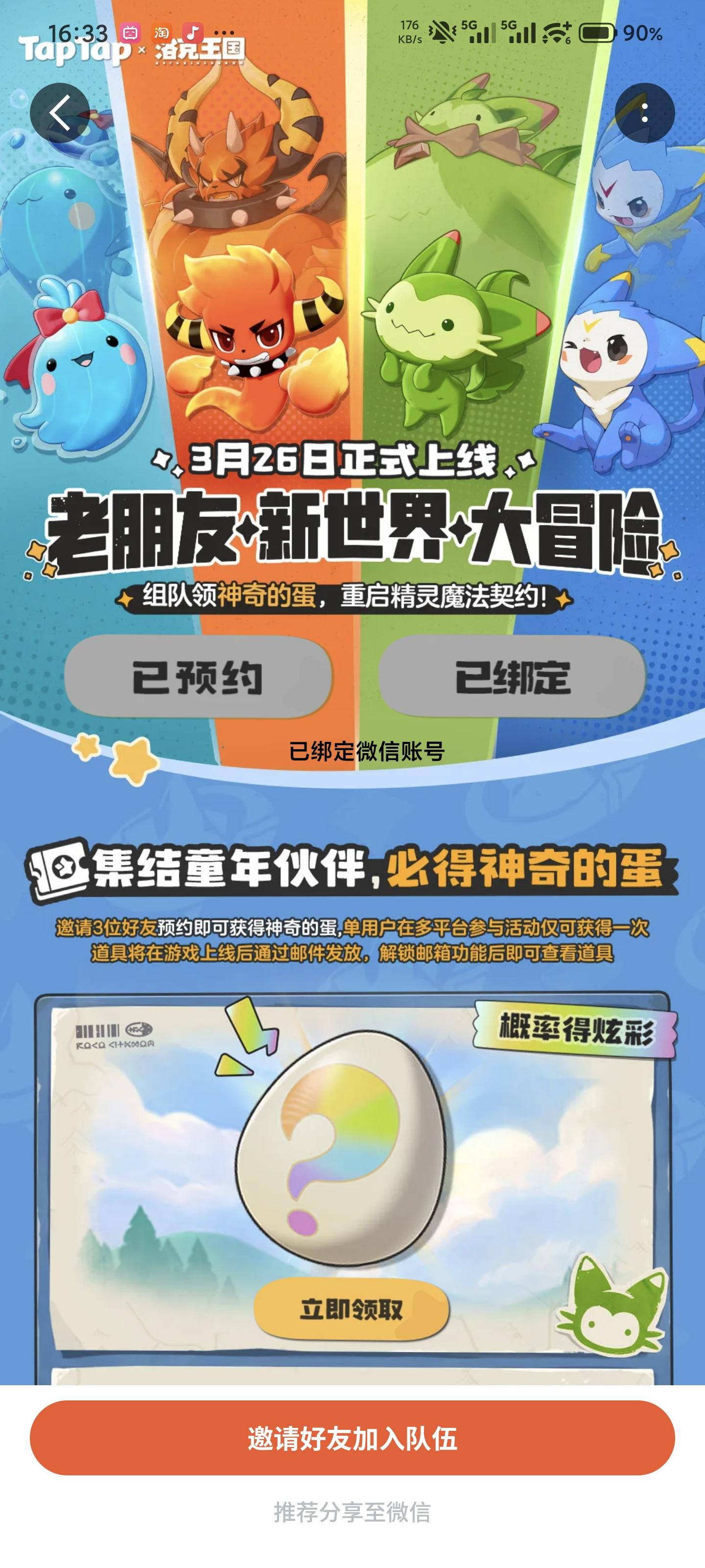 快来 TapTap 加入「《洛克王国:世界》3月26日上线,组队必得精灵蛋,概率获得炫彩精灵」 🕹 rJ2eKm95 🎮 https://tap.cn/lFas7TFbz 复制整段,打开 TapTap 发现好游戏