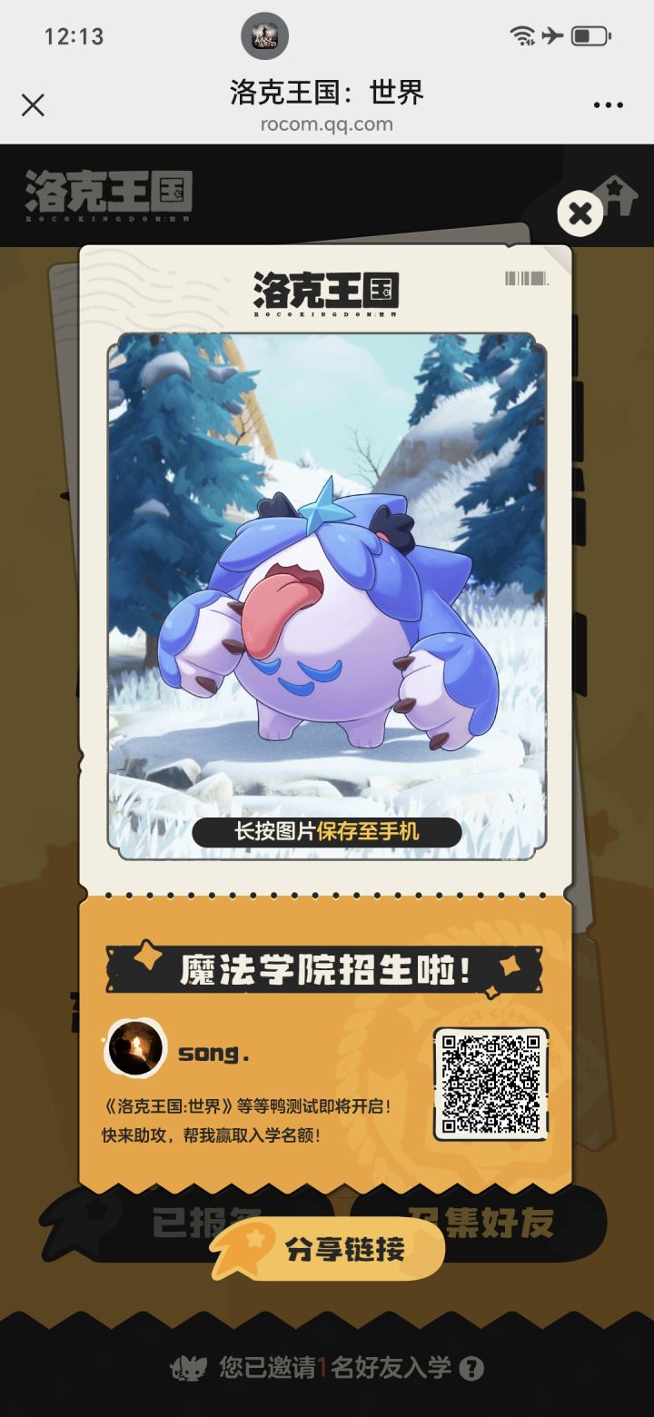 【魔法学院招生啦!】《洛克王国:世界》等等鸭测试即将开启!快来助攻,帮我赢取入学名额!点击链接参与助攻:https://rocom.qq.com/m/m202409/index/VdtZHXsZ4uNks.html?inviteCode=MTM4ODAxOTM4NTg1NzIyNTU4Njl8MQ==