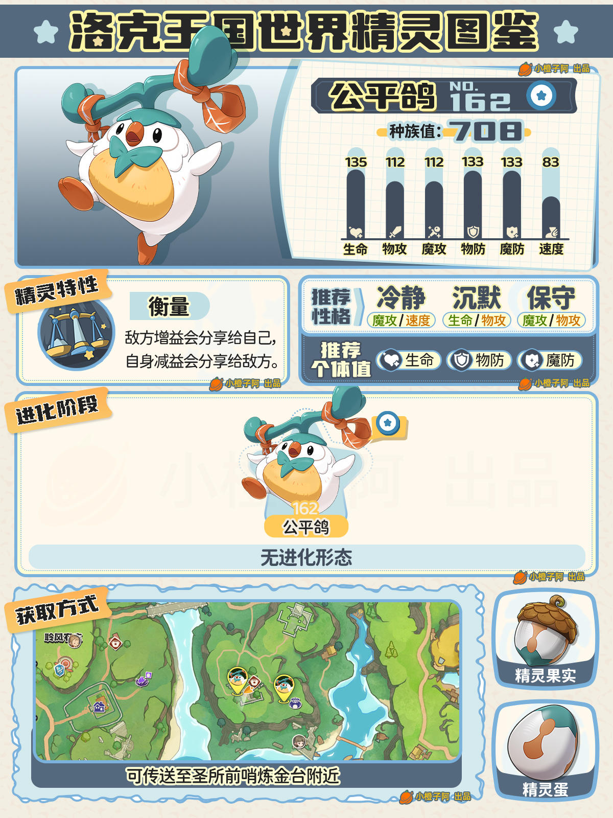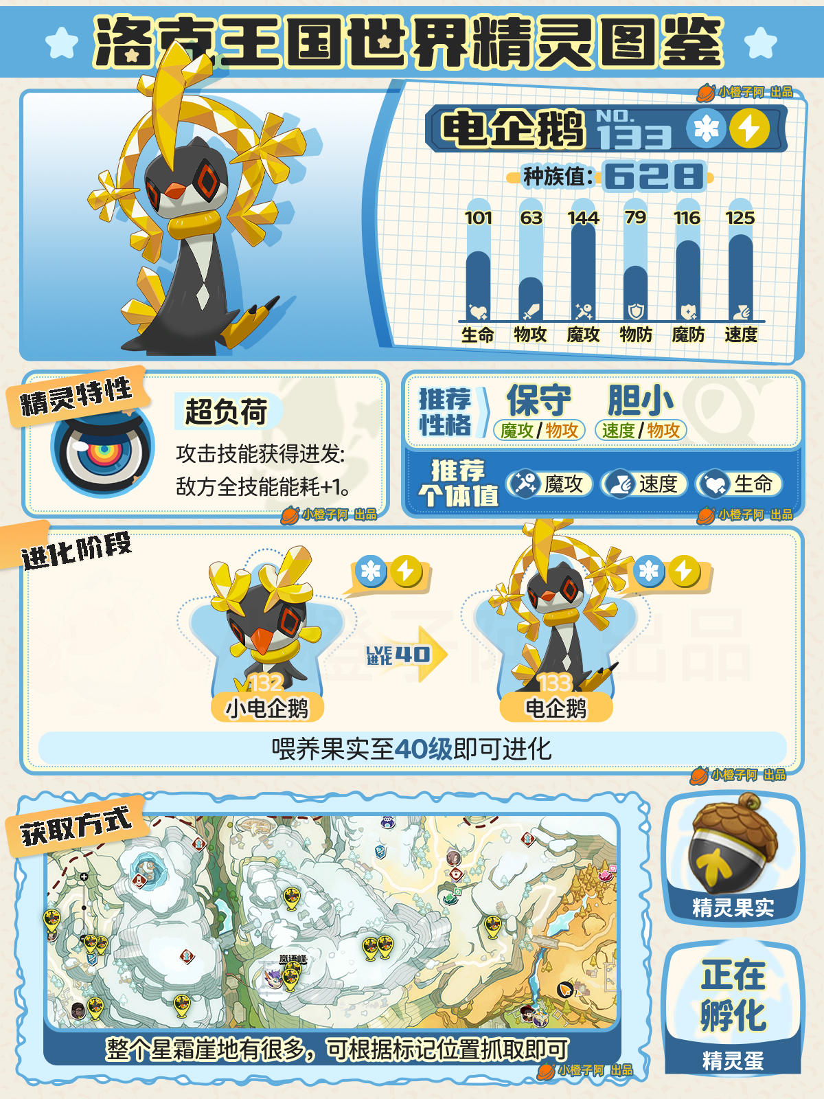 哈喽喽,大家好,这里是小橙子环游记~小伙伴们,这次是15张图哦,由于新御三家还没出,153-161先空着,到时候御三家我再补上。这次是133电企鹅到178斑枭的精灵图鉴。观前提示:①精灵数量比较庞大,数据可能存在一些问题,小伙伴们可以在评论区提出来,我进行慢慢修正。②图鉴性格、个体值并不是唯一,由于精灵配队多种多样,推荐的性格与个体值会出现差别,有可能橙子图鉴中并没有出现,小伙伴同样可在评
