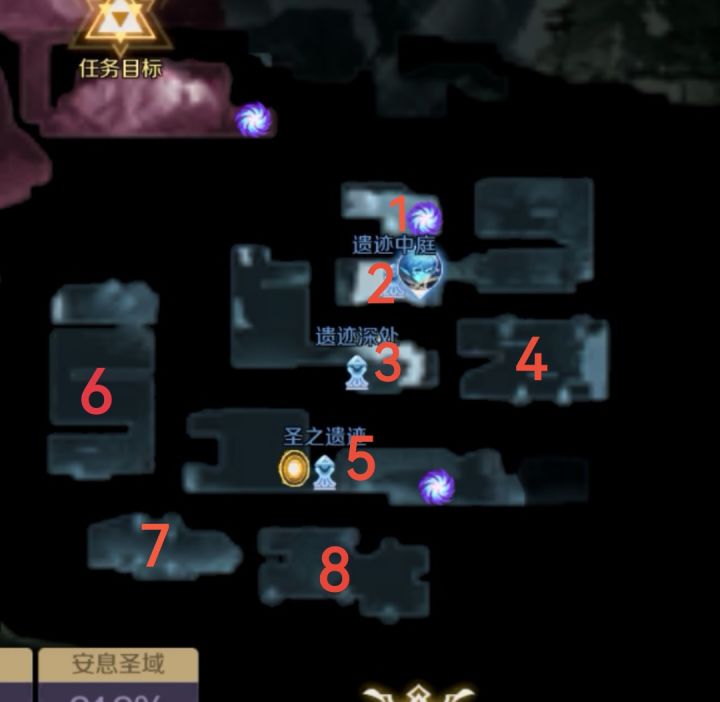 圣之遗迹共有8个场景一.场景1进入方法和位置本场景中共有两个传送门二.场景2进入场景2的方法和位置:通过进入场景1的2号传送门本场景中共有3个传送门(注:传送门2是回场景1的)三.场景3场景3的进入方法和位置:通过进入场景2中的传送门3本场景中共有两个传送门(注:传送门1是回到场景2的)四.场景4进入场景4的方法和位置:通过进入场景3的2号传送门本场景中共有一个传送门