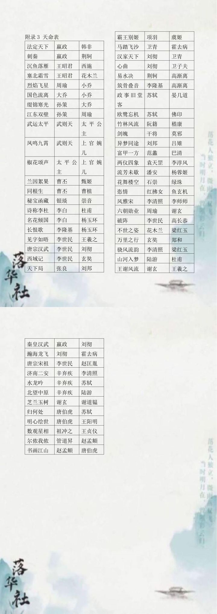 在新手阶段,忘川推出“新手卡池天卡up”的活动,参与天卡共有6位,分别为:李白、李世民、刘彻、武则天、韩非、嬴政。接下来逐一讲解各个名士的特性,方便大家做出最正确的选择。以下攻略来自使君@忘川风华录攻略站,仅作为参考,不代表官方观点。嬴政 / 群攻推荐指数:★★★★★天命组合:嬴政-韩非:嬴政【觉醒·万世永昌】增加其攻击40%的伤害。嬴政-荆轲:嬴政受到攻击时有60%的固定概率增加10点