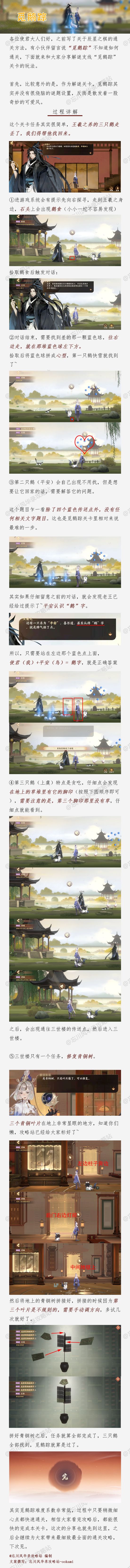 除了之前大家都知晓的常规触发条件外,攻略站给大家揭露一个很惊喜的彩蛋。解谜任务《忘川摸鱼大赛》的开发组隐藏任务:来到故世风云普通2-3的第三关中,有个石狮子,连摸10下即可完成开发组隐藏任务,后续再达到任务的其他要求就可以解锁该解谜任务(其他条件具体是啥俺们还在研究)