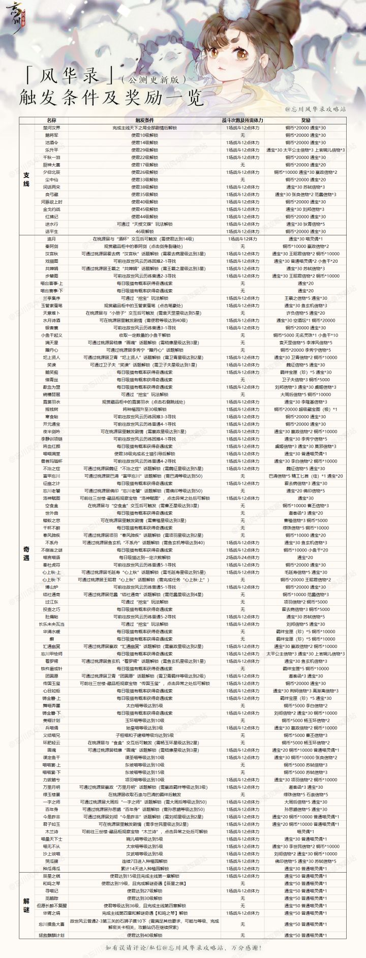 《忘川风华录全奇遇、解谜任务触发条件汇总》