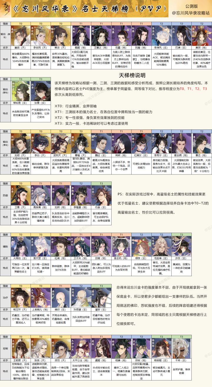 【忘川风华录名士强度榜PVP+PVE(公测版)】