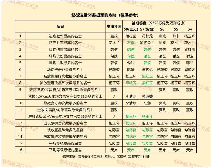 【紫微S9预卜攻略】仅供参考