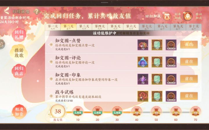 忘川风华录的知交圈功能什么时候恢复?我的归续前缘任务都做不了了啊!!!!!!