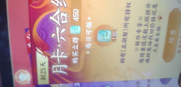 这个大小月卡的问题我真的有点儿想吐 我以为30的月卡党是为微氪党服务 60月卡就是给肝党或者氪党服务 ,我真的以为60的月卡包含所有30月卡的特权呢,直到今天我才反应过来,凭什么30月卡能领体力通关加成还有90通宝而60月卡只能领135通宝和重铸礼包!那你60的月卡凭什么要写包括五湖契所有特权啊! 我真吐了今天打开明确看了一下才发现 我真反胃有点