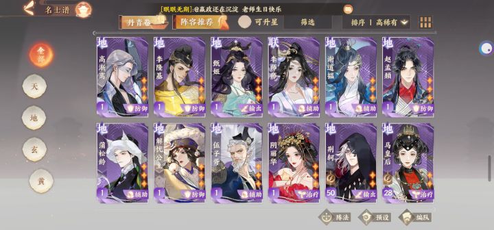 本来已经打算转武则天了,把汤显祖转到6星,邓武已经很久很久没在金戈上过了,现在就是3控猴勉强每周蹭上纵横但是昨天的更新不但加强了武则天本体还加强了邓武天命,我就很犹豫了。我之后应该是会养刘卫天命的,感觉跟邓武邓鹅都不是很搭的感觉。武则天这次加强后应该很久都不会加强和新天命了,除非明年出李治。邓娥目前也不太能上场,不知道后续还有没有新天命现在很纠结转武则天还是刘娥,或者是都不转了?感觉现在6星汤