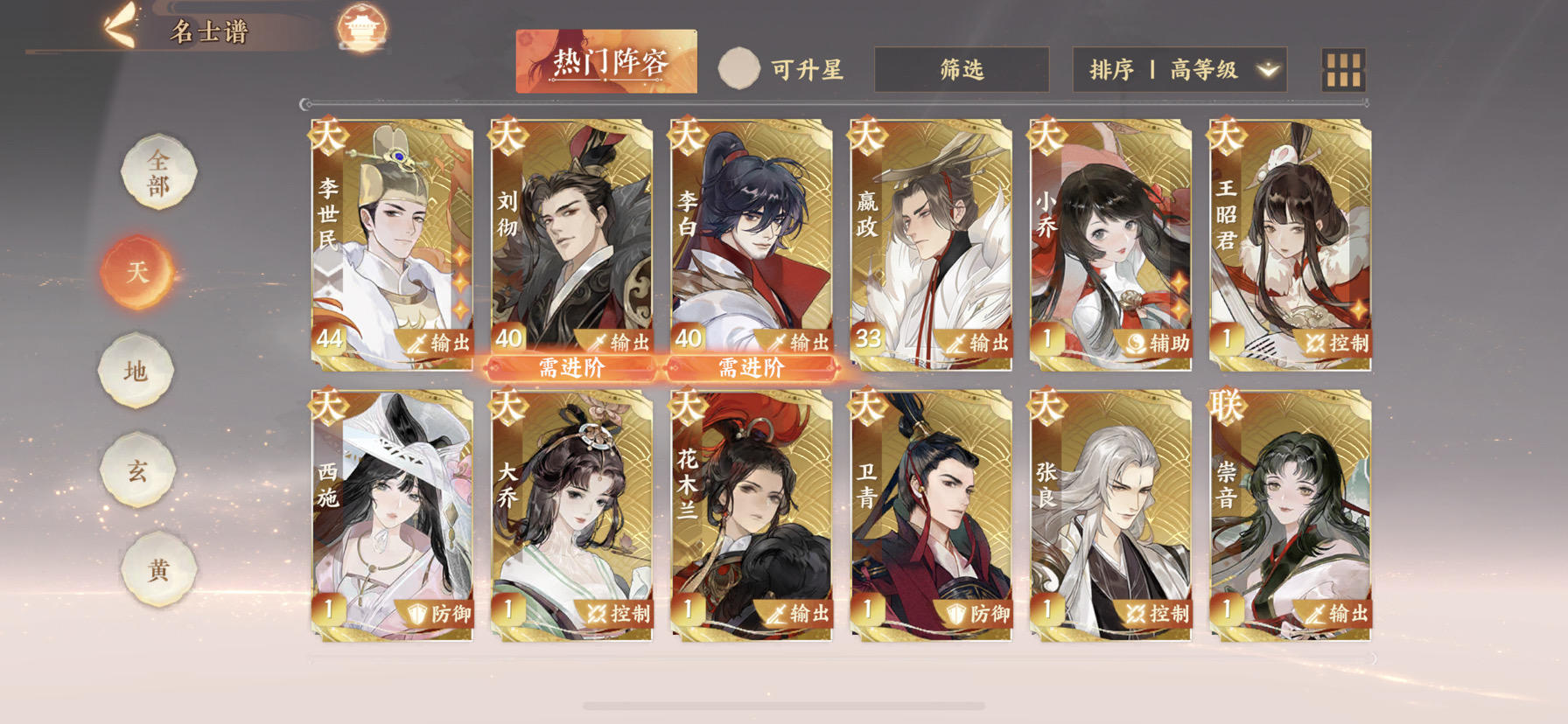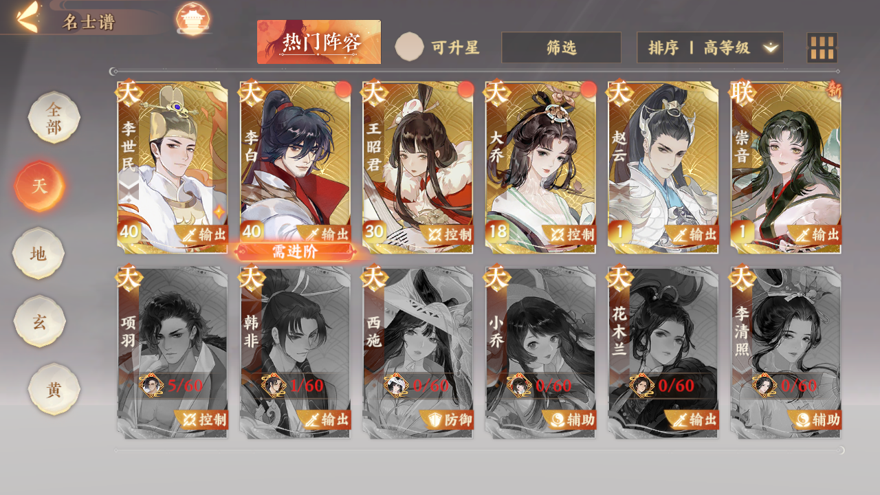 有李白,女皇,李世民,曹植,有点纠结养哪一个QAQ