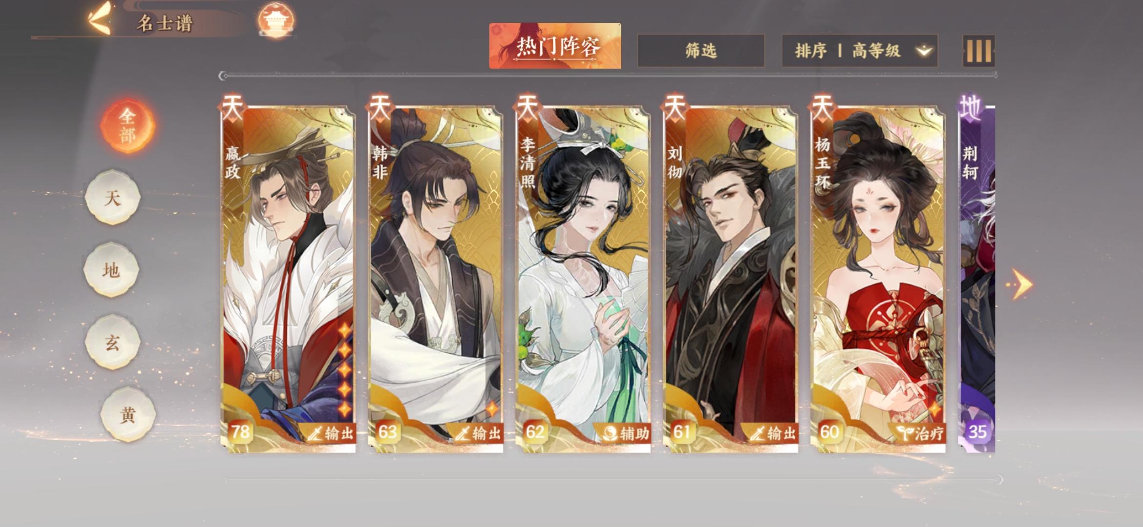 嬴政马上满级,踏破也齐了,马上出第二套红了,主嬴政剩下部分资源给韩非?还是刘彻?不氪有十个肝