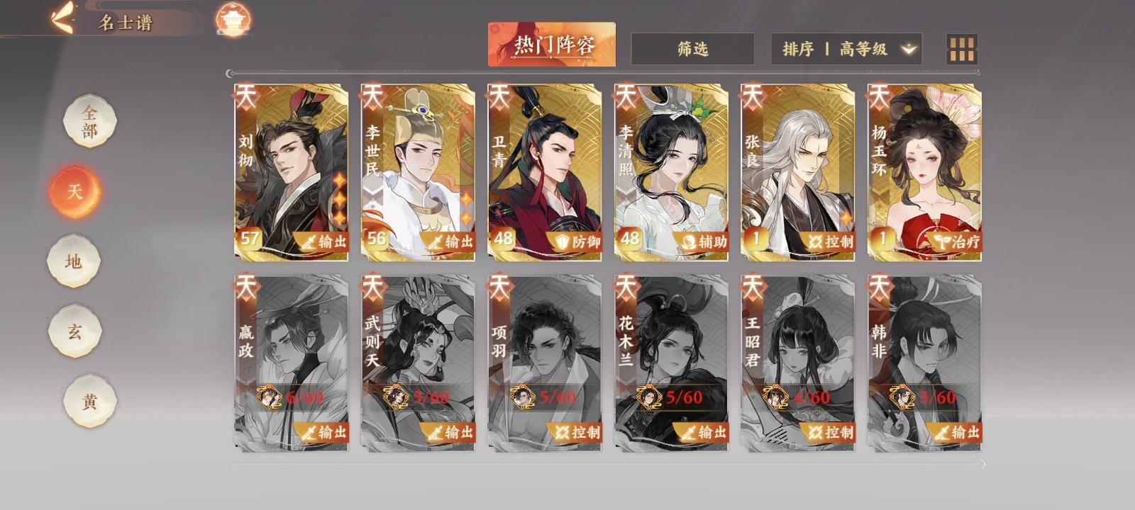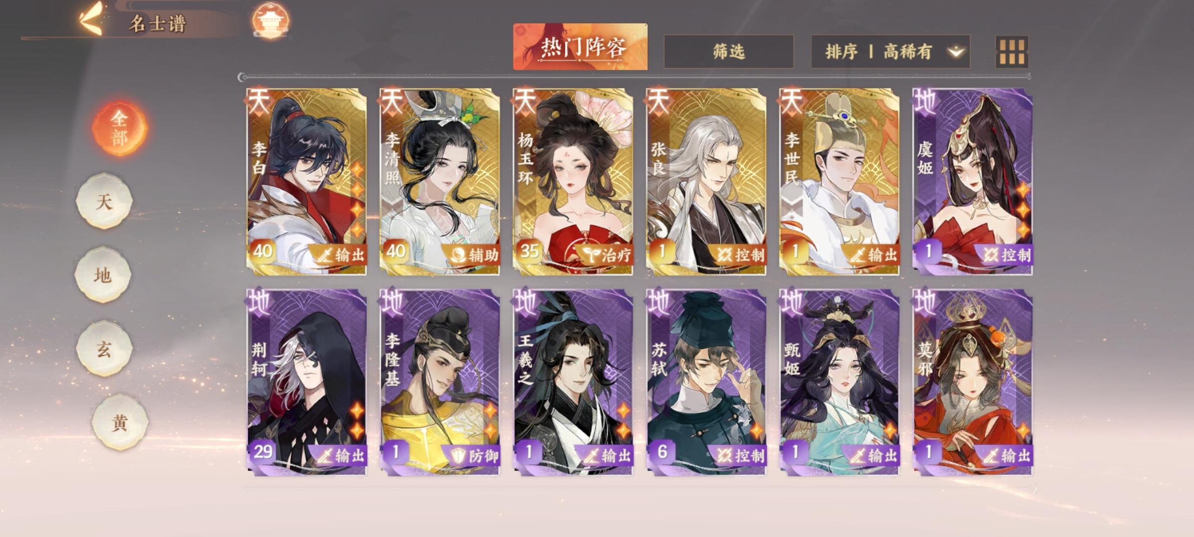 最终理想阵容是汉家+武后+贵妃+张良,不考虑金戈沙盘,目前用的是汉家武后和尚王義之,本来以为出不到杨贵妃的……新卡池我才20抽,都是盛世霓裳,第一个十连歪出了另一个卡池的昭君,第二个就直接出了(别说欧原本320总抽带自选才5金,就刘彻出了一个重复的,剩下全是万能攒上去的)……所以本来打算在杨贵妃没搞好之前用和尚,和尚撑不住了换婉儿。婉儿已经靠各种歪到了四星,放弃了有点可惜,等返灵谱养谁?万能有30