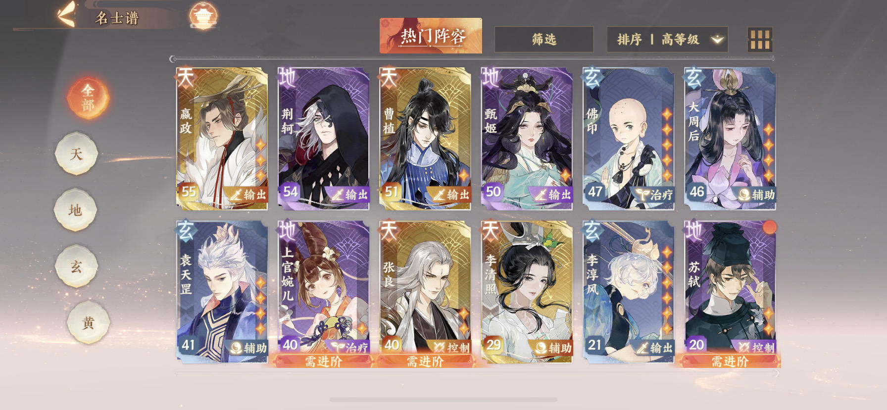 主力是嬴政和荆轲,看脸养了曹植和甄姬但是总觉得伤害不高,现在阵容想用大周后+李清照+嬴政+荆轲,请问还有个坑位养什么好呢?