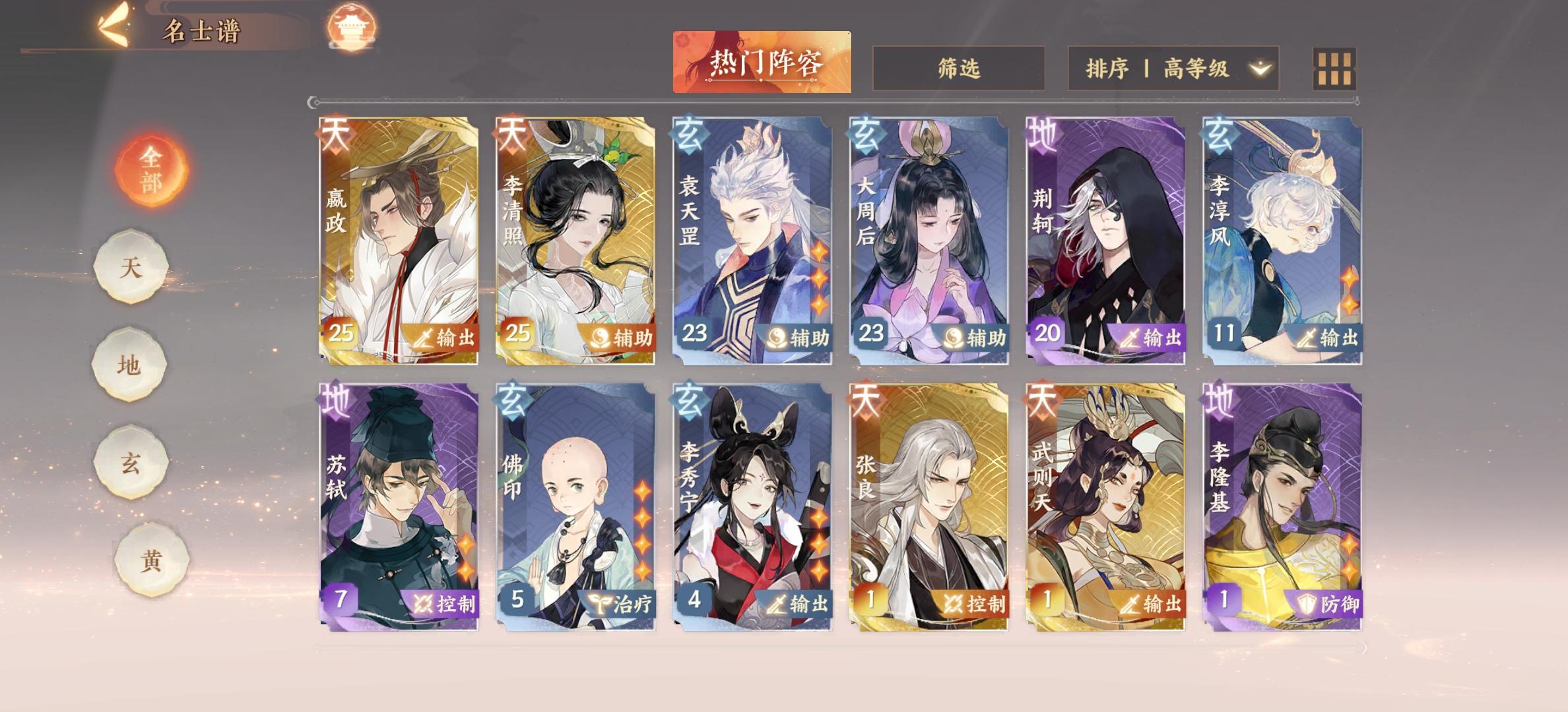 我本来一直用的嬴政+韩非+大周后+袁天罡+李淳风这一套,其他一个也没练,但是嬴政敏捷太低拉不起来,在论坛又看到嬴政+韩非+张良+荆轲这一套,现在有点纠结到底组什么😣