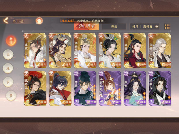 主打副本,目前队伍“李清照 嬴政 李世民 武则天 上官婉儿”,感觉上官有点乏力,想换,养谁比较好?玄黄都齐了。(顺便求个PVP队伍,金戈馆的碎片我挺馋的)