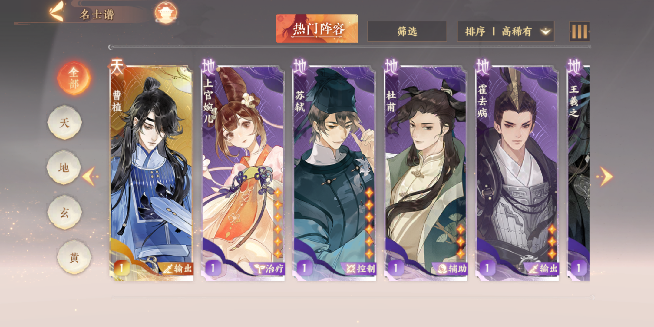 萌新刚玩两天,自己摸索了半天还是不知道那些名士值得养,还有求个配队,麻烦大佬们了