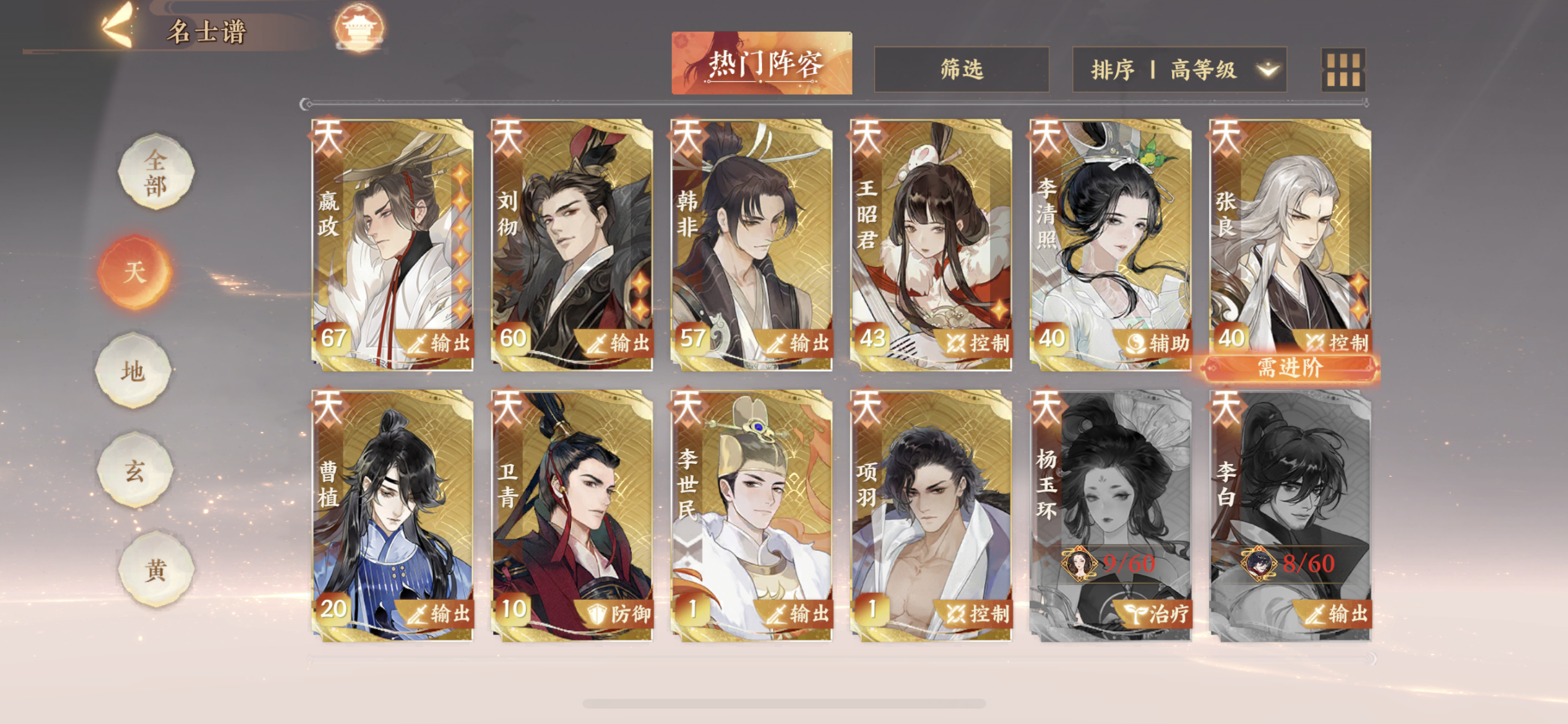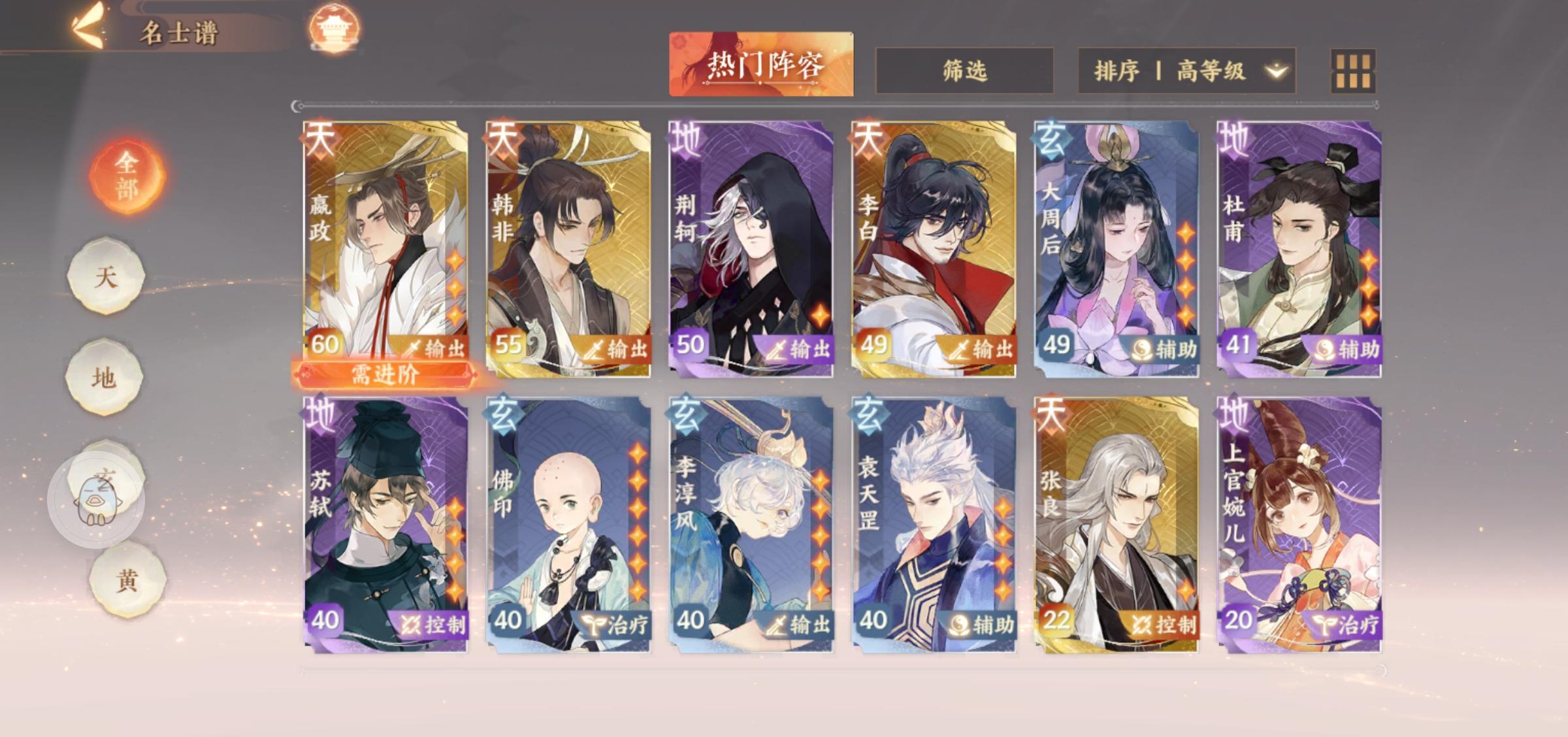 求大佬帮忙看看如何配置队伍,附上卡池,是应该先升韩非还是拉李白还是说其他卡