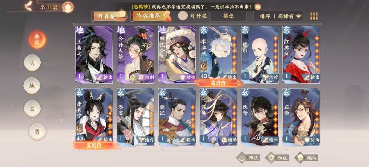 老师们求配队 地品的名士下面还有 没露出来 我是准备抽司马光的 后面那俩是歪的(没垫多少抽)然后还有自选卡池我选的祖冲之 #忘川风华录 #忘川风华录新手刚玩怎么配队 我的服务器是多情岸 来来回回退游过