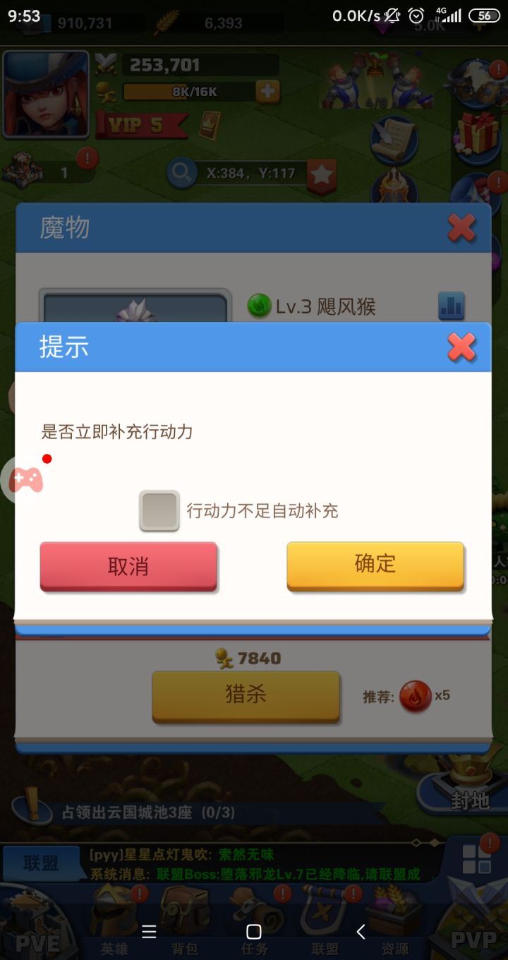 发现一个bug,显示我有8K行动力,杀敌需要7800+行动力,提示我行动力不足
