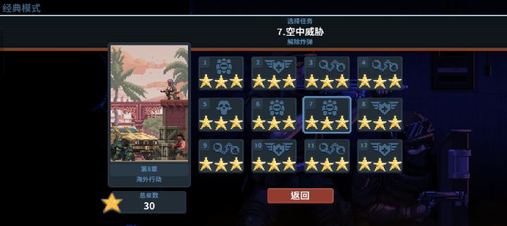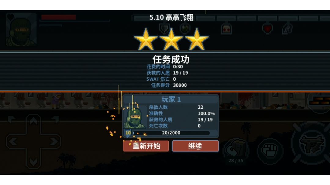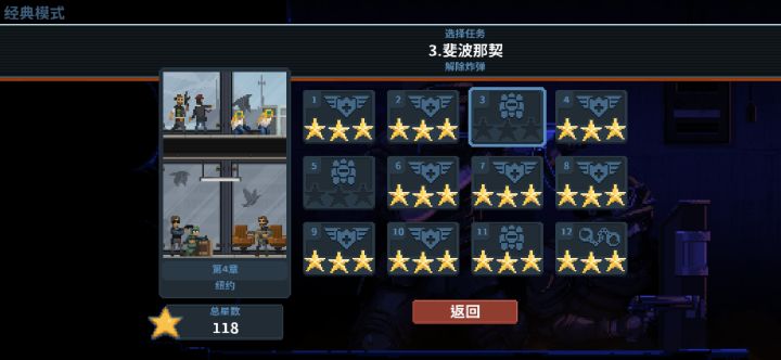 似乎有很多人在这一关都拿不到三星,所以发个攻略。打法的关键在于狙击步枪,它能无视地形攻击敌人,防止人质被引爆。其他怎么样都好,就是不要太莽。