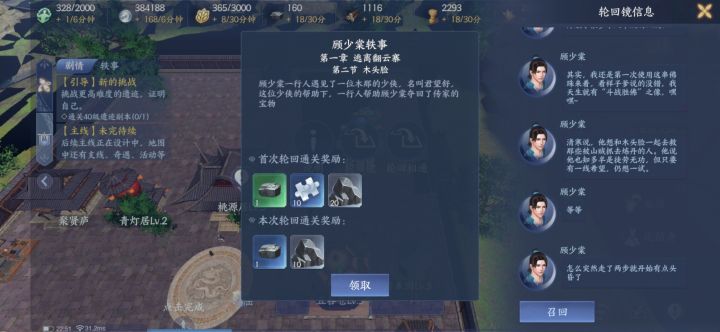 只能先关轮回镜信息后才能领取奖励,有点反人类啊!当时我以为卡死了,重启好几次(✪▽✪)