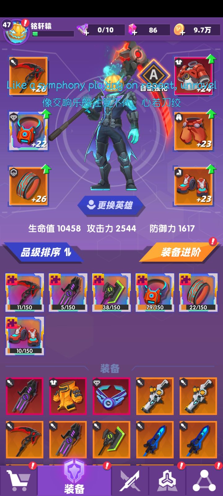 人物前期有啥用啥,黑翼配天王星枪感觉非常帅,选自己喜欢的装备推荐雷霆套,其他都是垃圾,武器每件都有特色,推荐天王星枪和星陨火箭,吸血镰在30%血以下才吸血,可我试了下,搭配能量汲取天赋,回血效果的确强,怪越多越强,可低血量很容易暴毙,等后期全神话装备可以玩玩,辰星刀普攻范围小,灭星手炮散弹枪 ,单体较强,对群弱 ,斧头不好看技能用寒冰护盾(1级就有40%最大生命盾,3费,就是冷却有点久)和激光