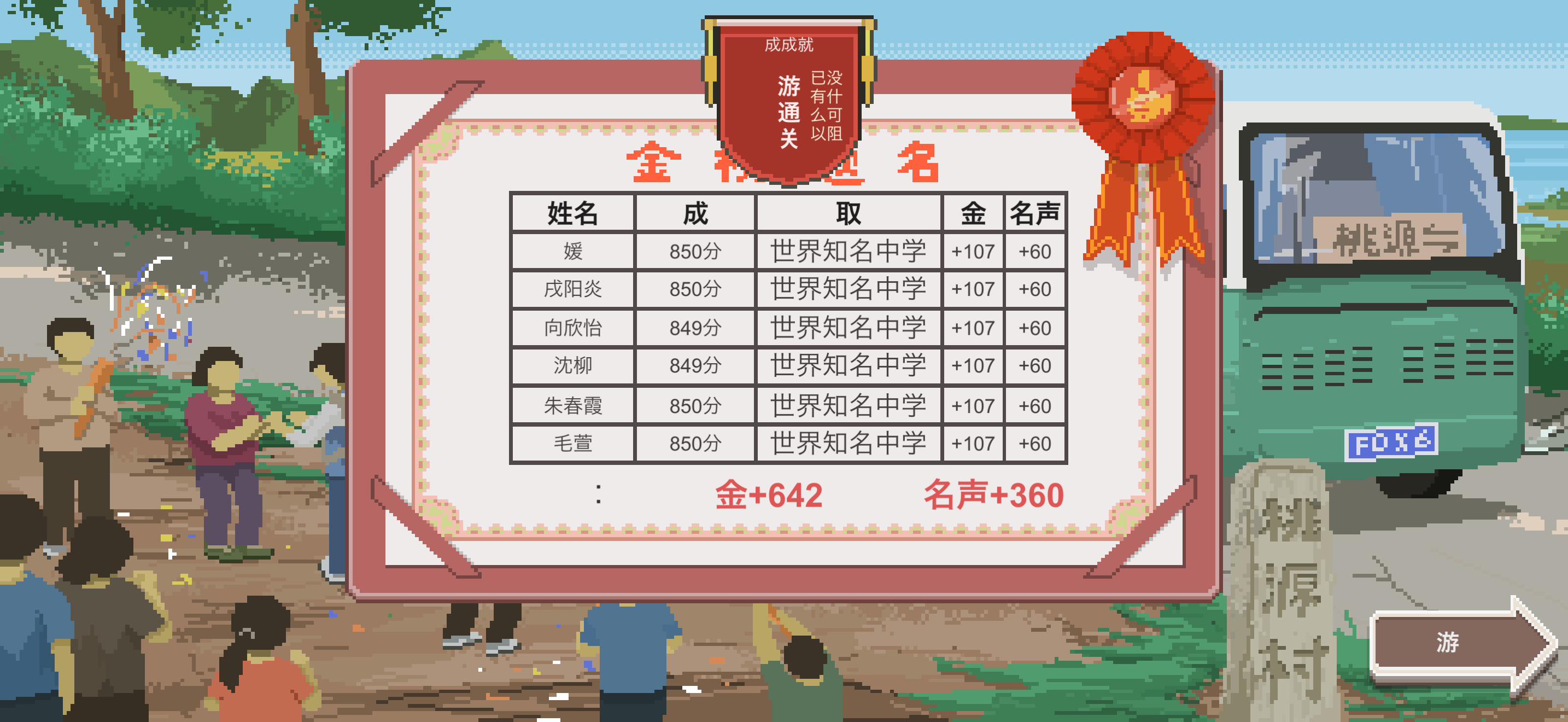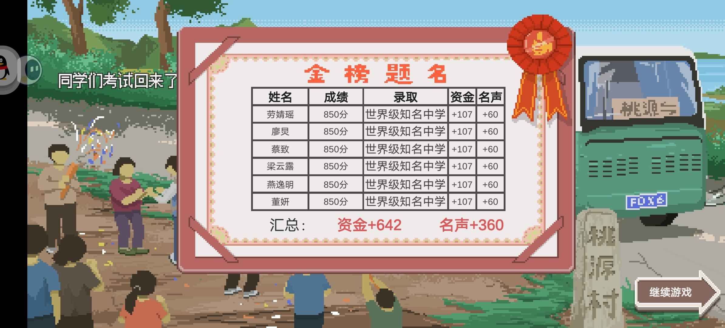 12000知识才能考上国家级高中 算是差不多快到上限了,再快也顶多快到第五届,而且还得脸白,抽到的学生比较好(抽到有孤僻症的学生真的给我搞孤僻了) 大致思路如下:前四届发育,正常发育完,体力上限是150,教学、农业、厨艺均满级,名声1600左右 然后修筑(教室和操场)还差一级满级,脸好的话能拉满 第五期看脸白不白,白的话可以尝试冲击一波桃李满园成就 第一年和第二年全部都找学生谈话(每一连上六天,刚