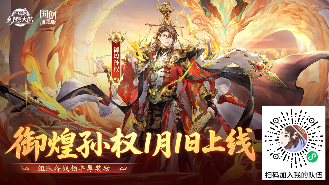 【三国志幻想大陆】御煌孙权携元旦幻想服上线,复制密令【U6a9v3U7u】,获取超值福利。