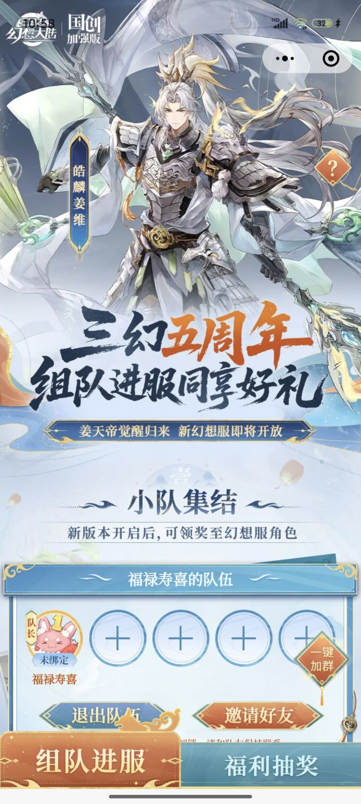 有需要组队领奖励的可以点链接加入队伍一起拿奖励#小程序://三幻活动站/2LvvdpXIQAF4EmH
